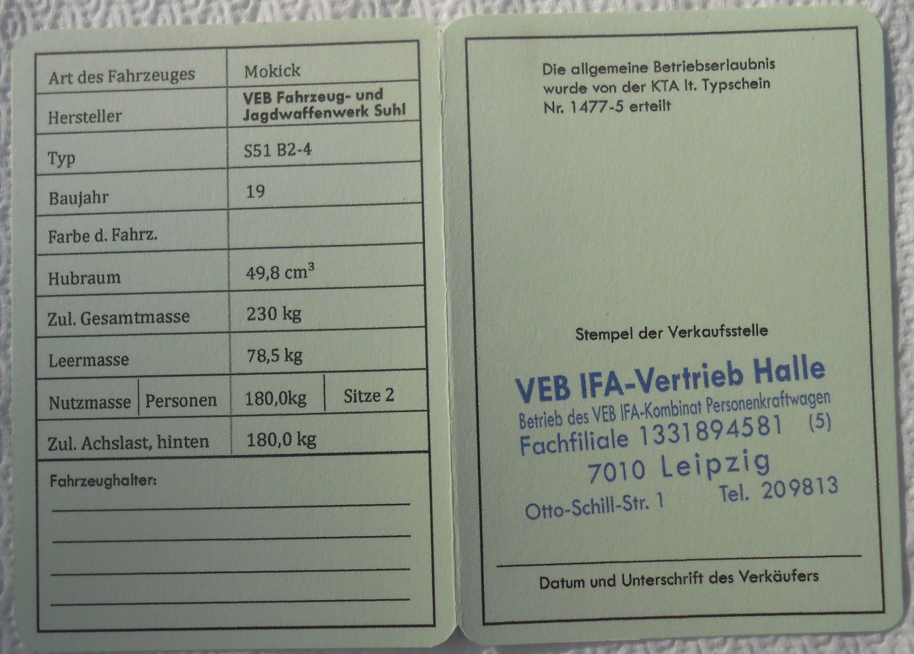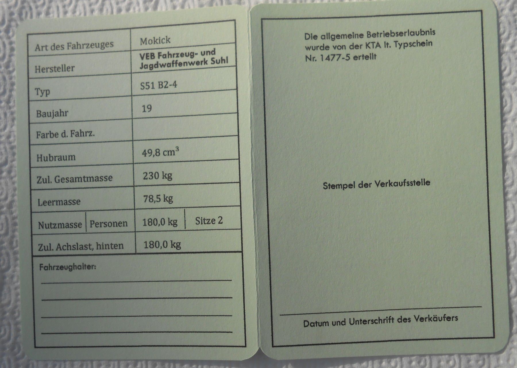 Betriebserlaubnis für S51B2-4, Enduro, Stempel, Simson