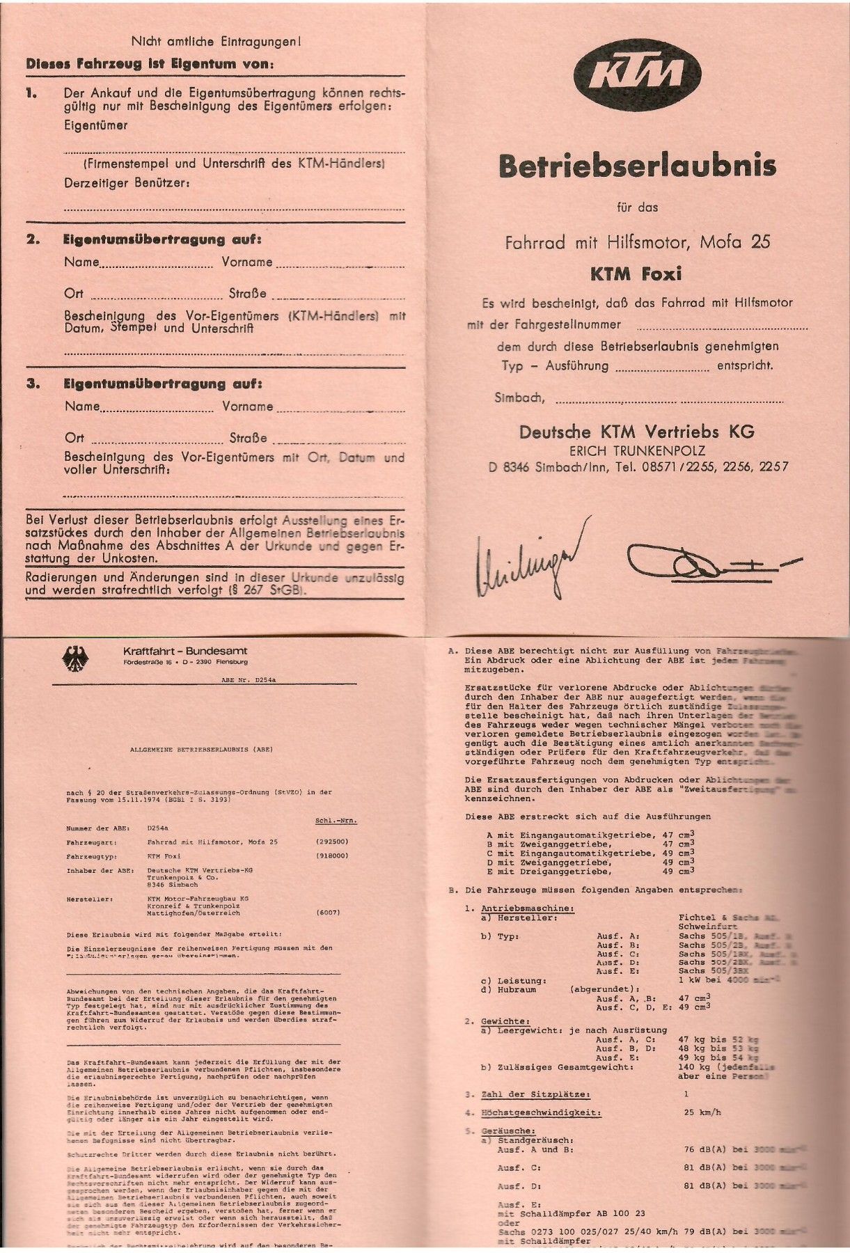 KTM Betriebserlaubnis KTM Foxi, Fahrrad mit Hilfsmotor, Mofa 25