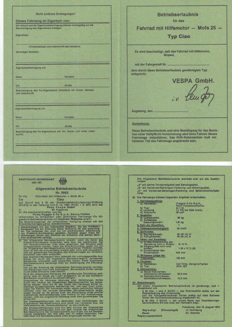 Vespa Betriebserlaubnis Vespa Piaggio Typ Ciao Mofa 25