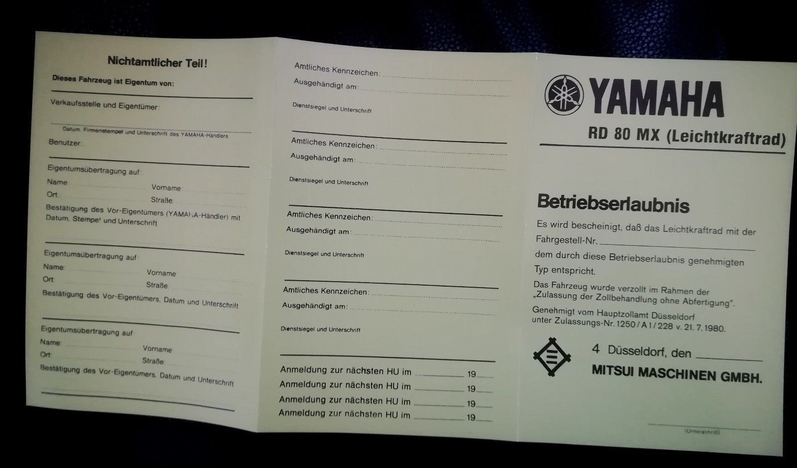 Yamaha Betriebserlaubnis YAMAHA RD 80 MX
