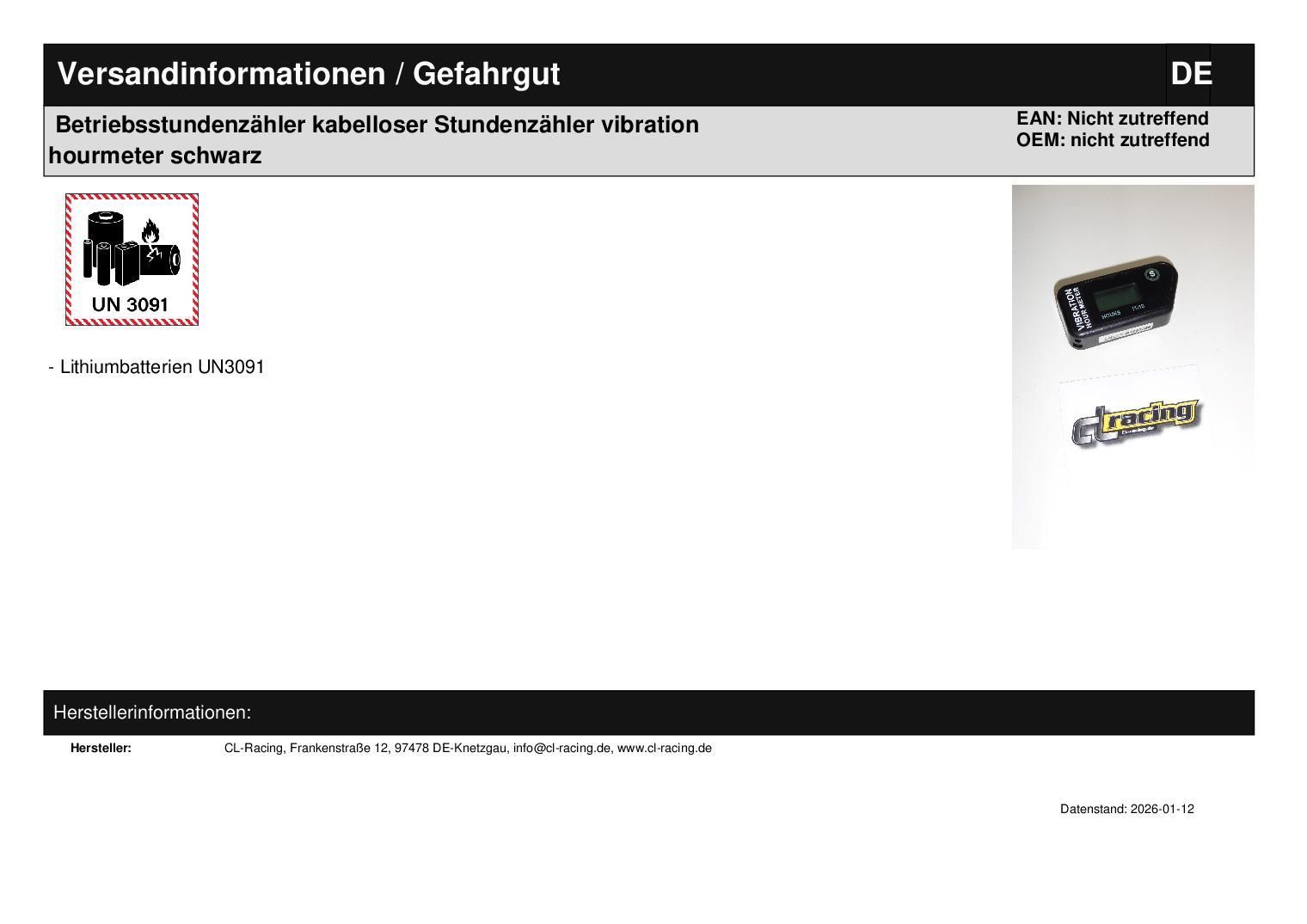Betriebsstundenzähler kabelloser Stundenzähler vibration hour meter schwarz In dieser Auktion gibt es folgenden Artikel kaufen: Vibrations-Betriebsstundenzähler (ähnlich Foto) Artikelbeschreibung: wasserdichter, rückstellbarer Betriebsstundenzähler; kann leicht und schnell am Fahrzeug verbaut werden