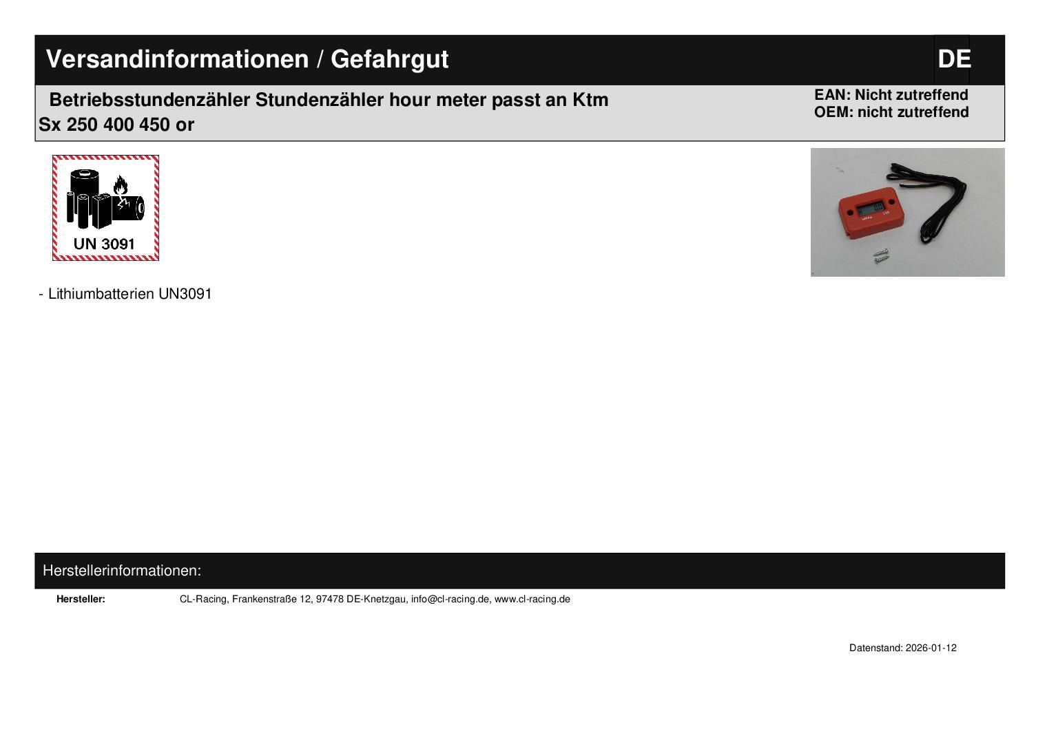 Betriebsstundenzähler Stundenzähler hour meter passt an Ktm Sx 250 400 450 or In dieser Auktion gibt es folgenden Artikel zu kaufen: Betriebsstundenzähler incl. Anbauteile (ähnlich Foto) Modell: universal Artikelbeschreibung: wasserdichter Betriebsstundenzähler; kann leicht und schnell am Fahrzeug v