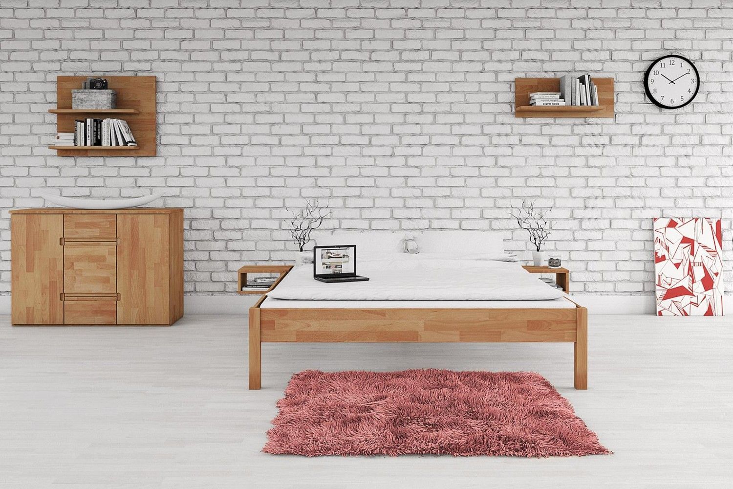 Bett Bento 1 Sonderlänge 160x220 Kernbuche massiv ohne Kopfteil mit Holzbeinen