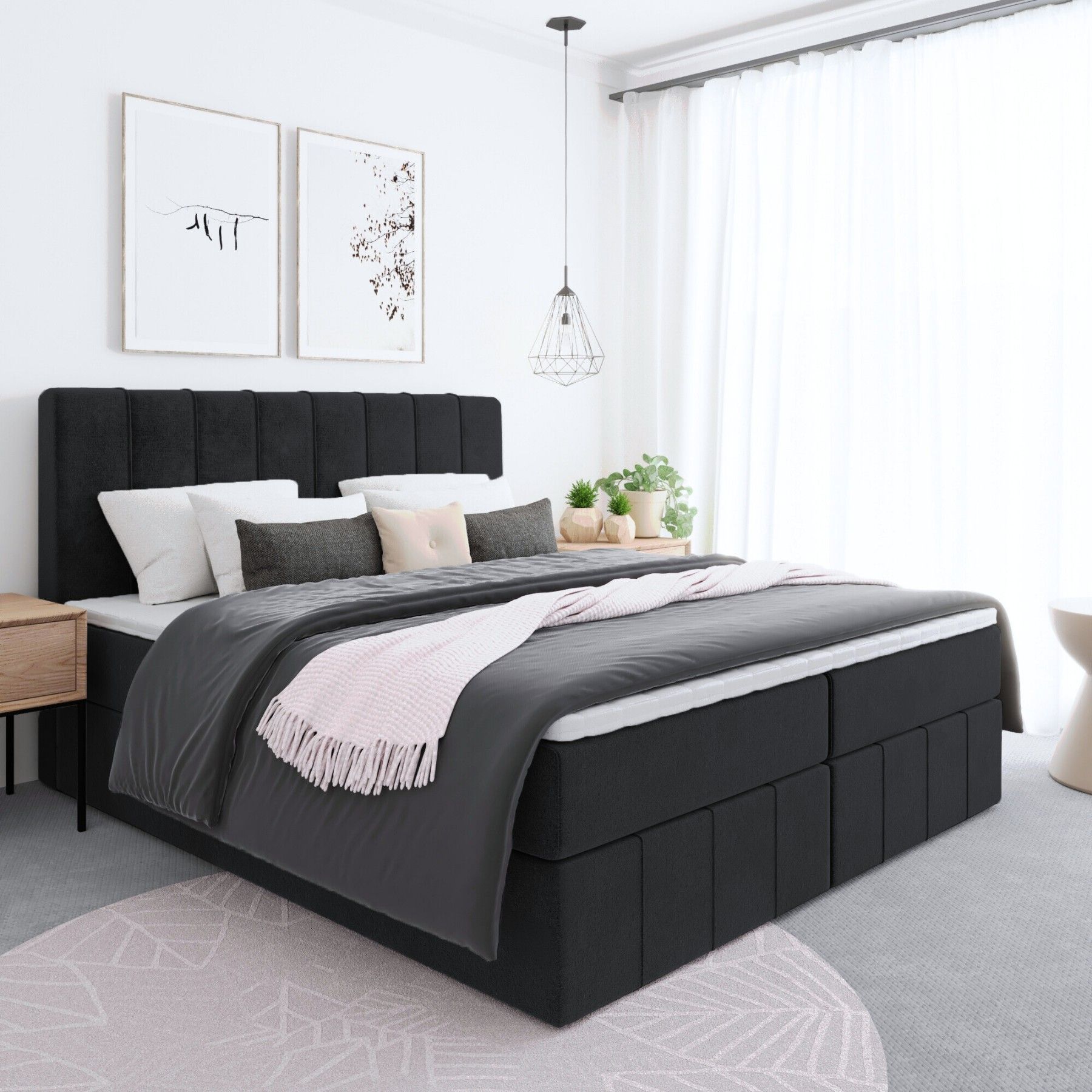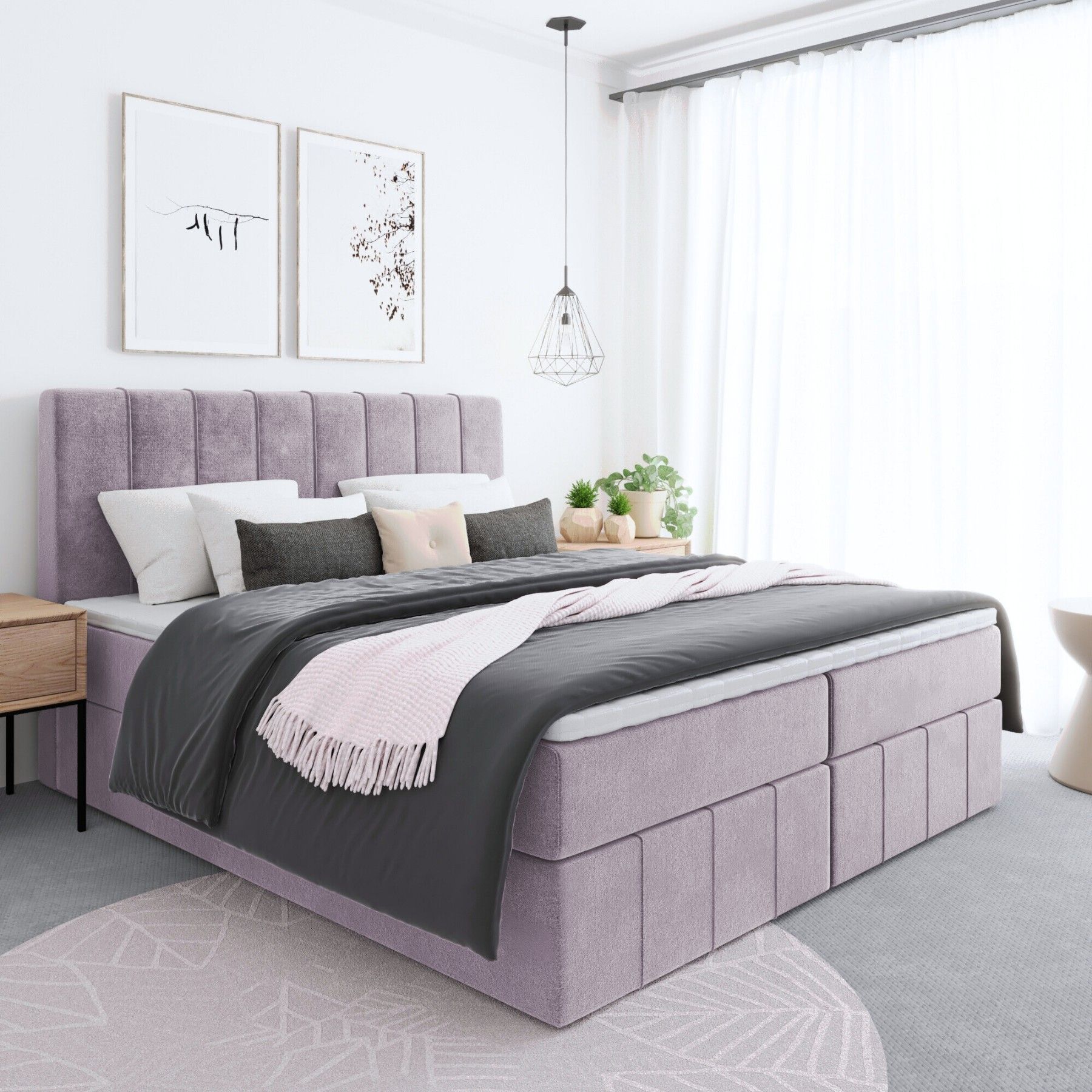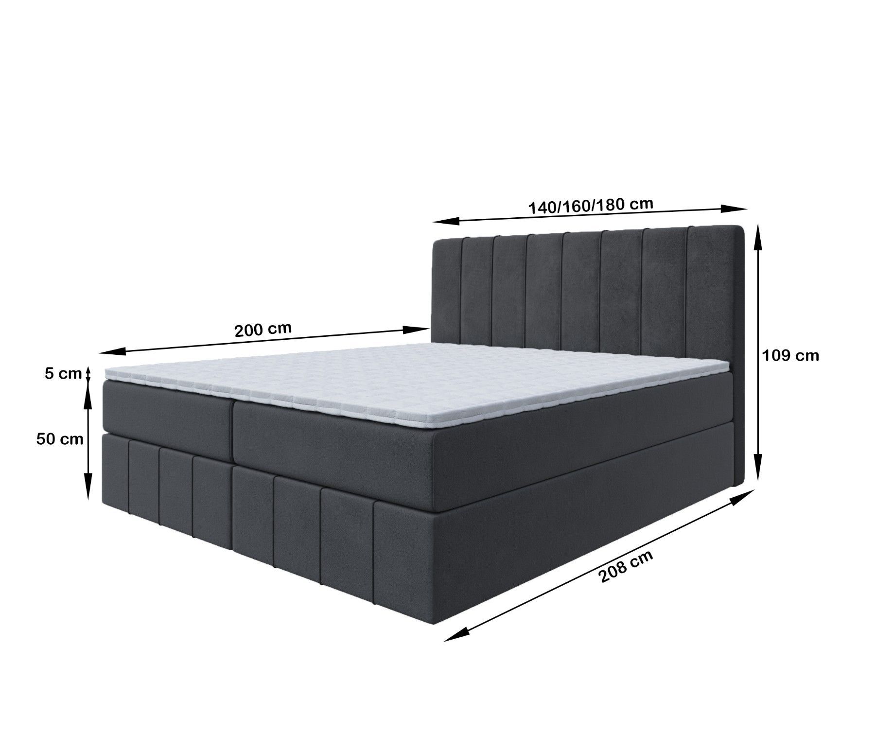 Boxspringbett BEGI Das Boxspringbett BEGI bietet ein dekoratives Kopfteil für zusätzlichen Komfort. Es unterstützt den Kopf und Nacken, steigert die Gemütlichkeit und Ästhetik. Schicht 1: Obermatratze (Topper)- Eine 4 cm dicke Schicht aus hochwertigem T25-Schaumstoff oder Topper VISCO bietet angeneh
