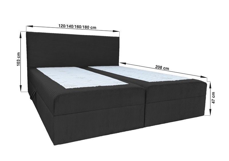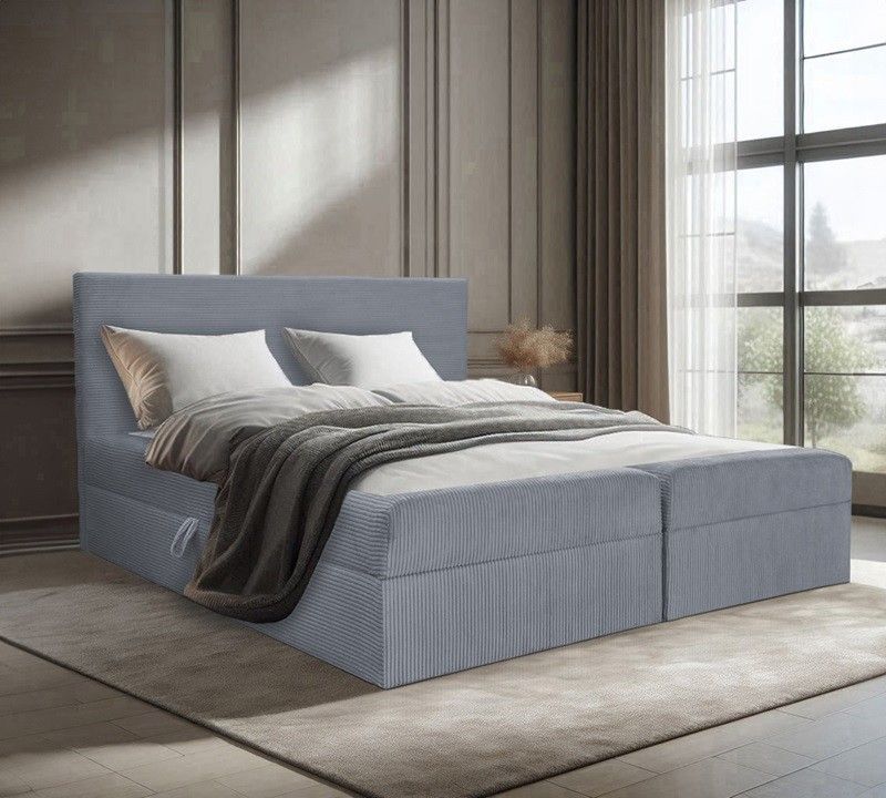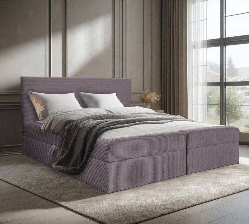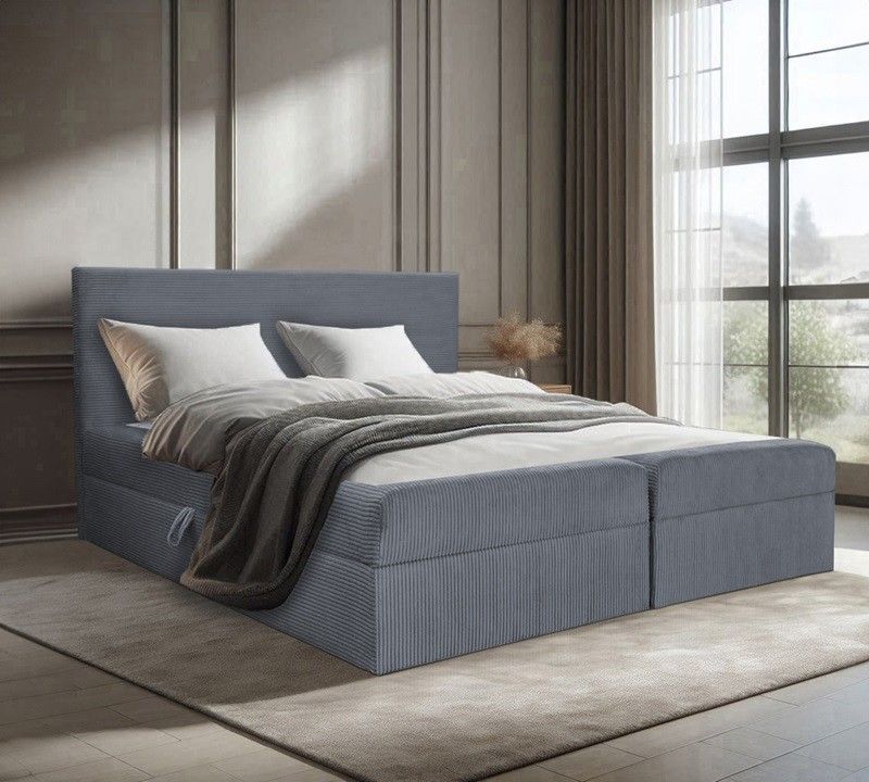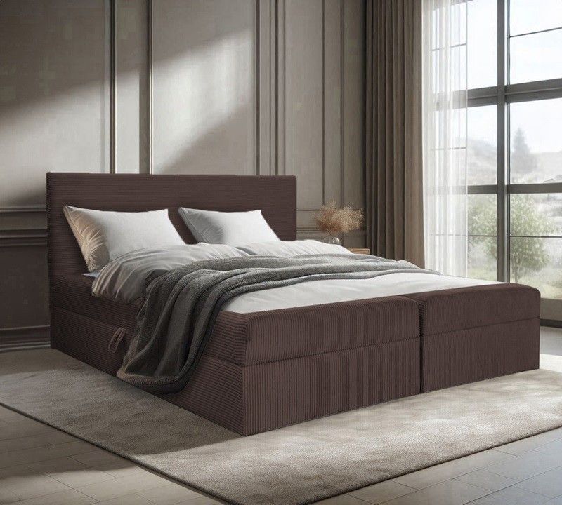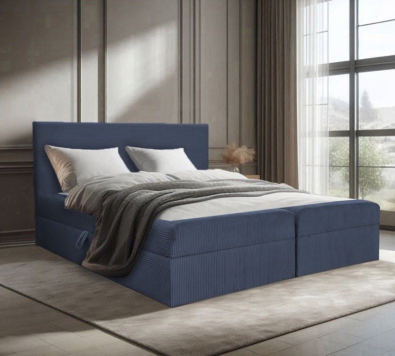 Bett, Boxspringbett BERG POSO mit Bettkästen, Doppelbett Topper H3 140 160 180 200 cm