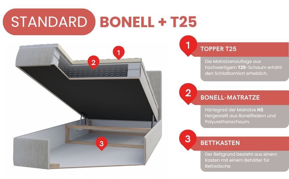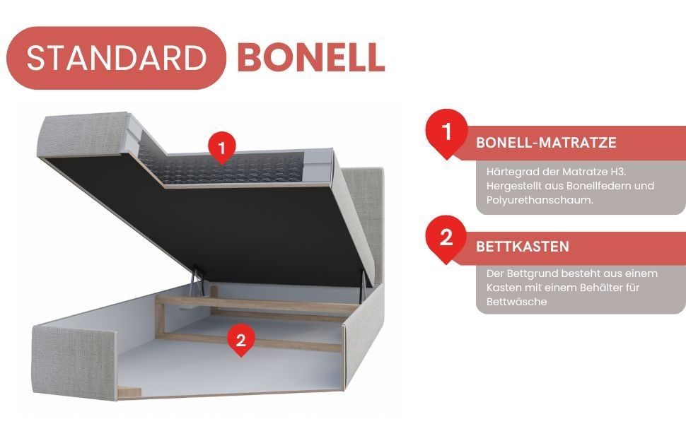 Bett Boxspringbett LUMORA mit Bonell-Matratze mit Schublade, Kinderbett H3