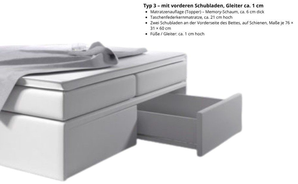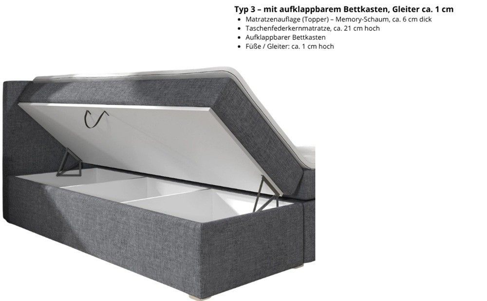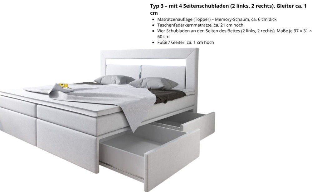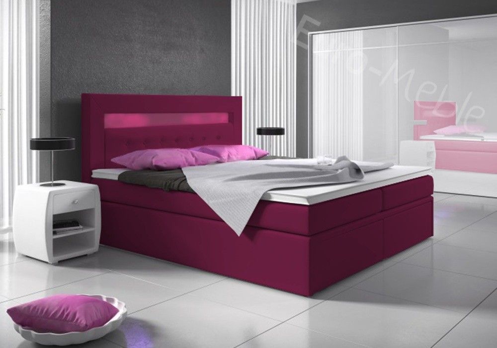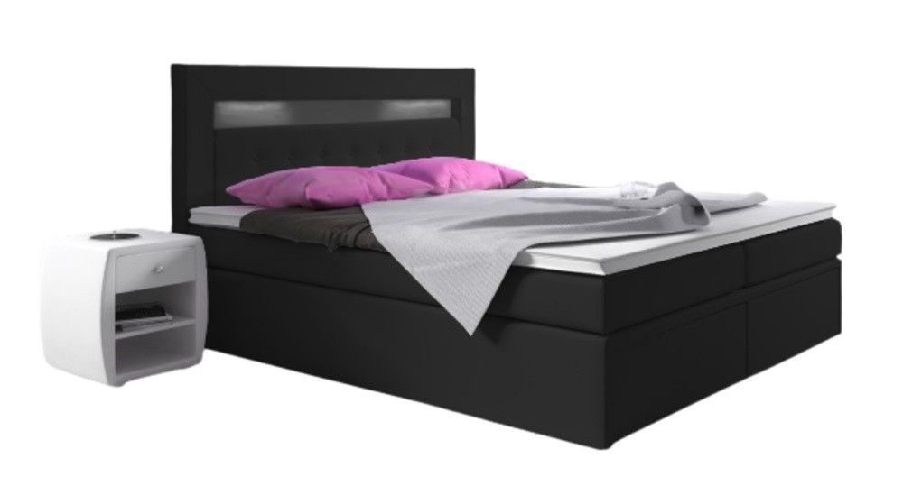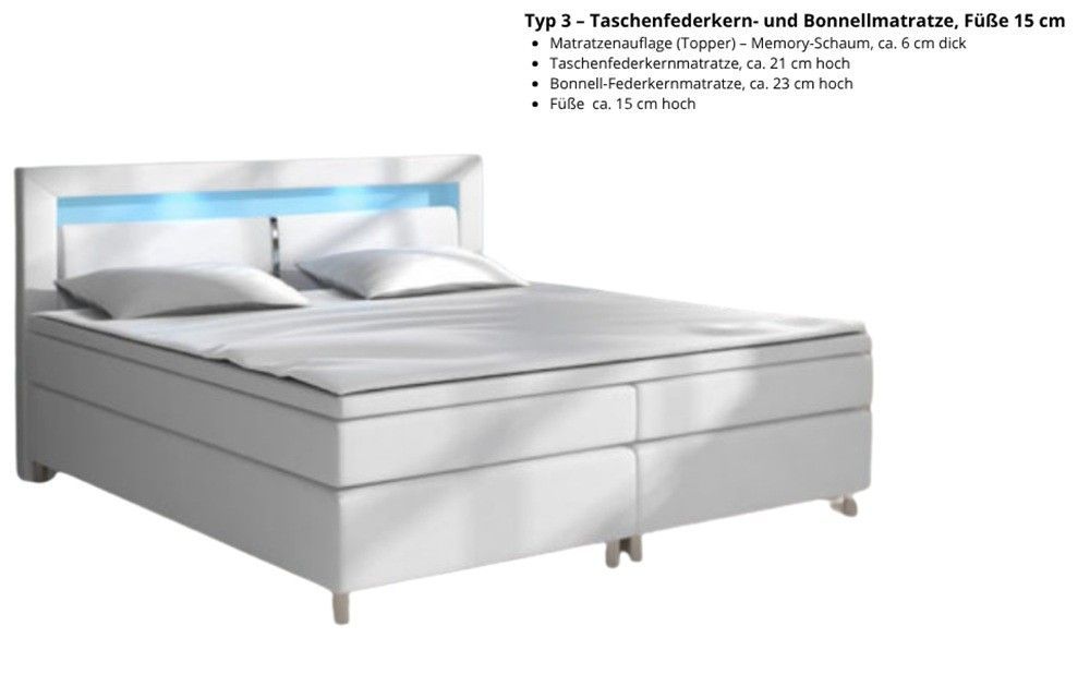 Bett, Boxspringbett MILANO II - TYP 3, Topper, H3, Doppelbett, LED-Beleuchtung