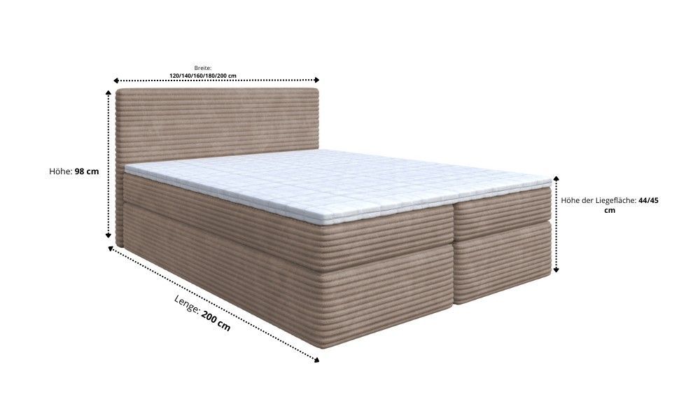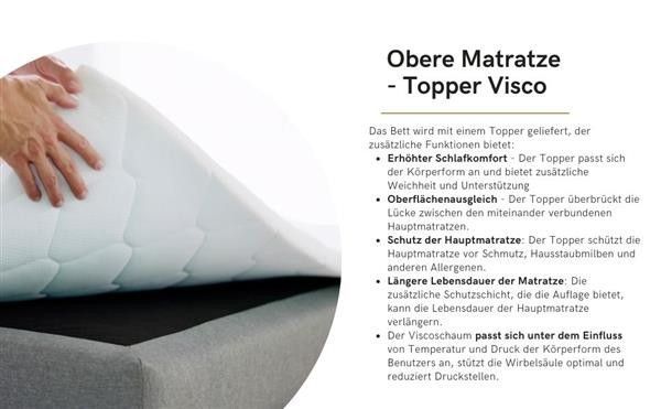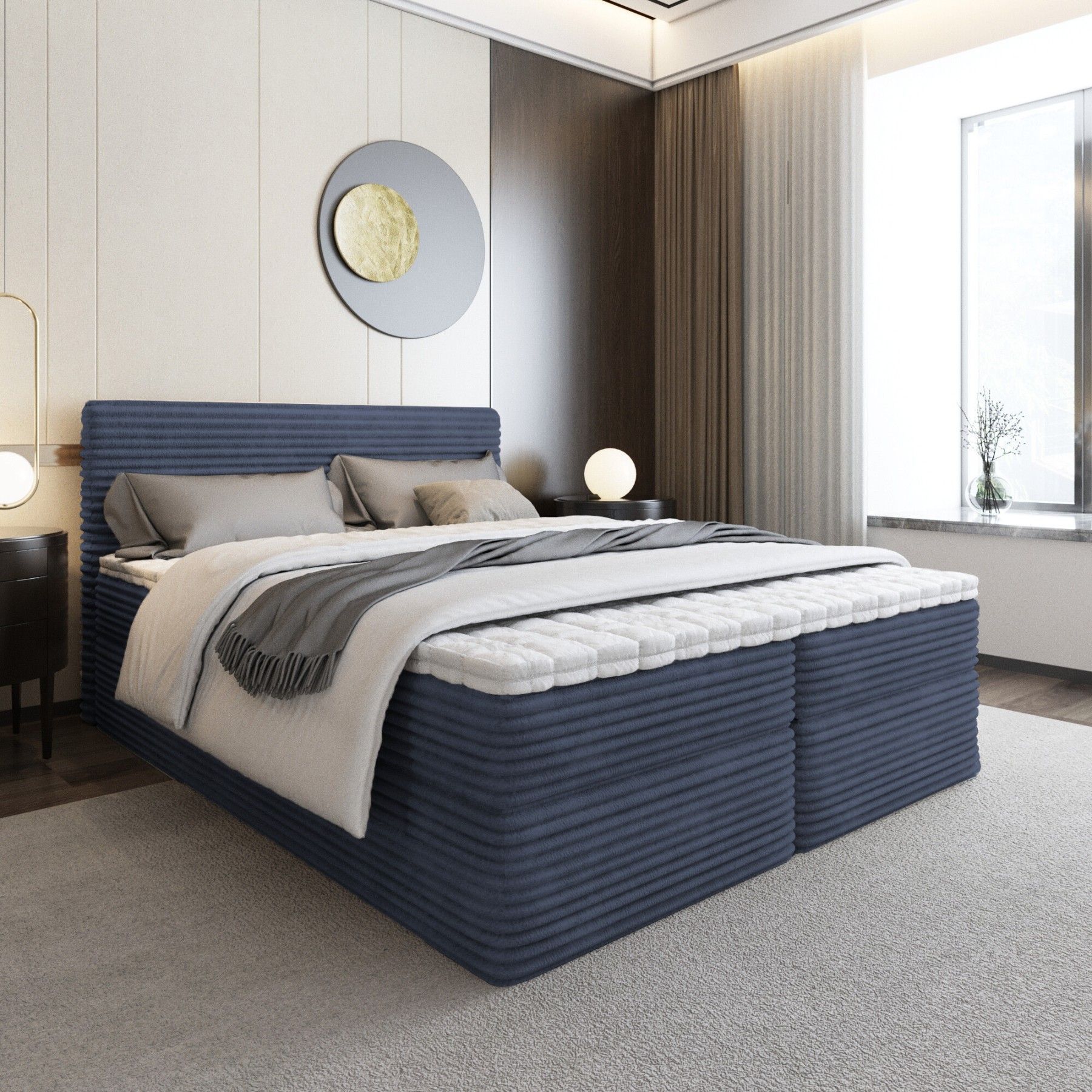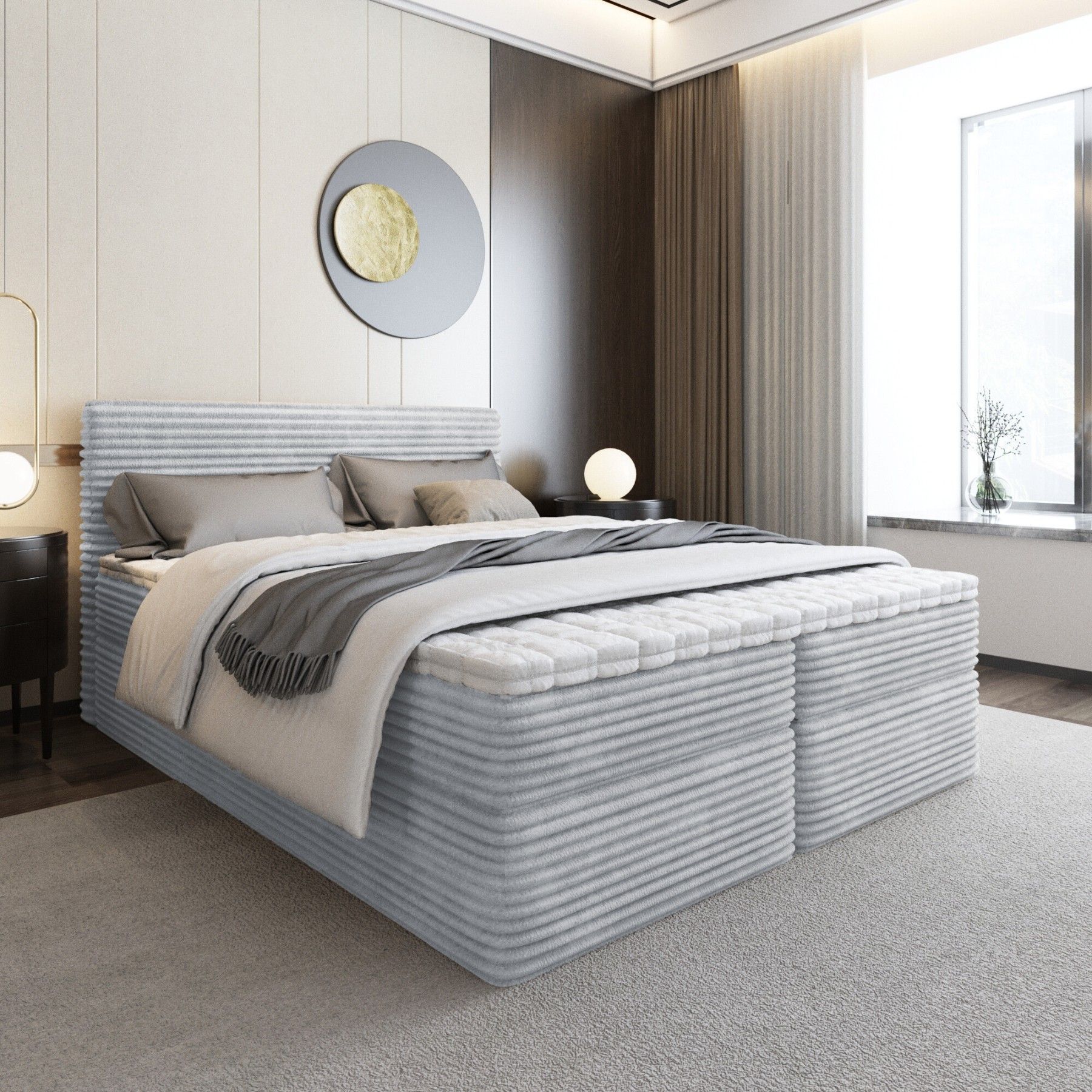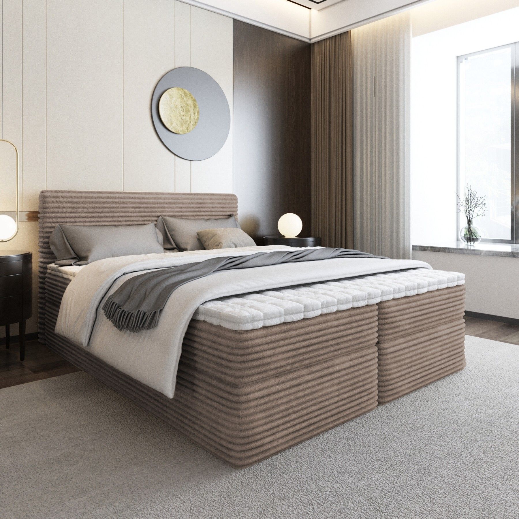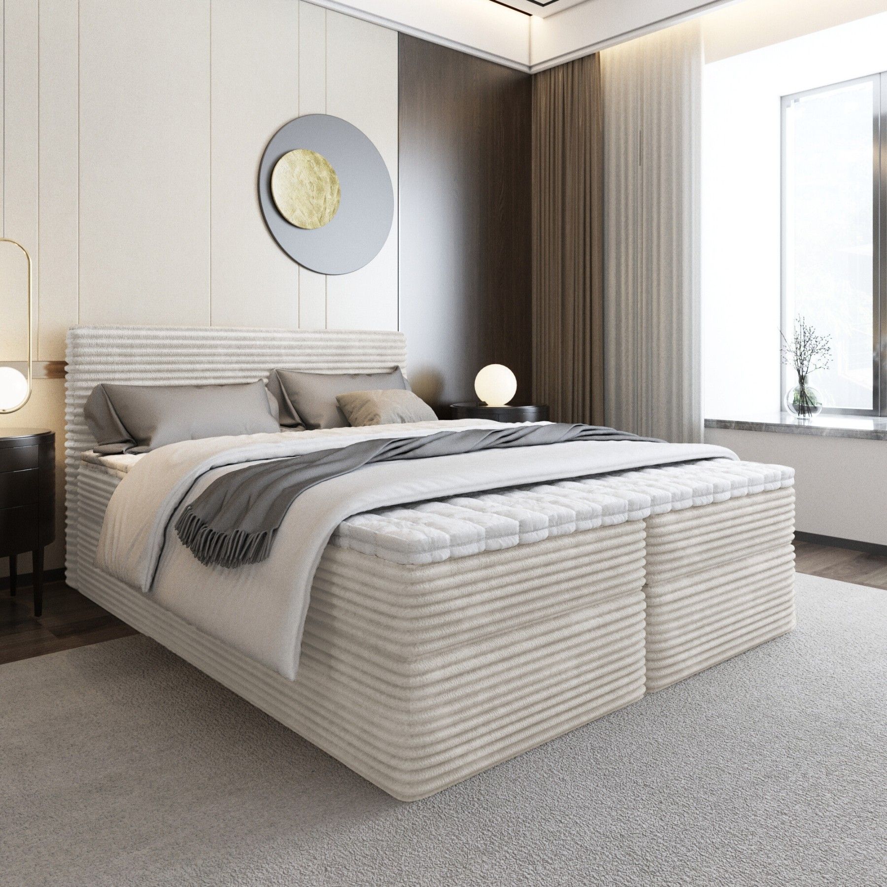 Bett, Boxspringbett ZENO mit Topper, Federkern, Doppelbett, Bettkasten, Stauraum