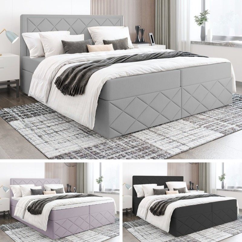 Bett Doppelbett Boxspringbett DORI 3 mit Bonell-Matratze + Bettkästen , H3