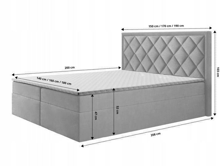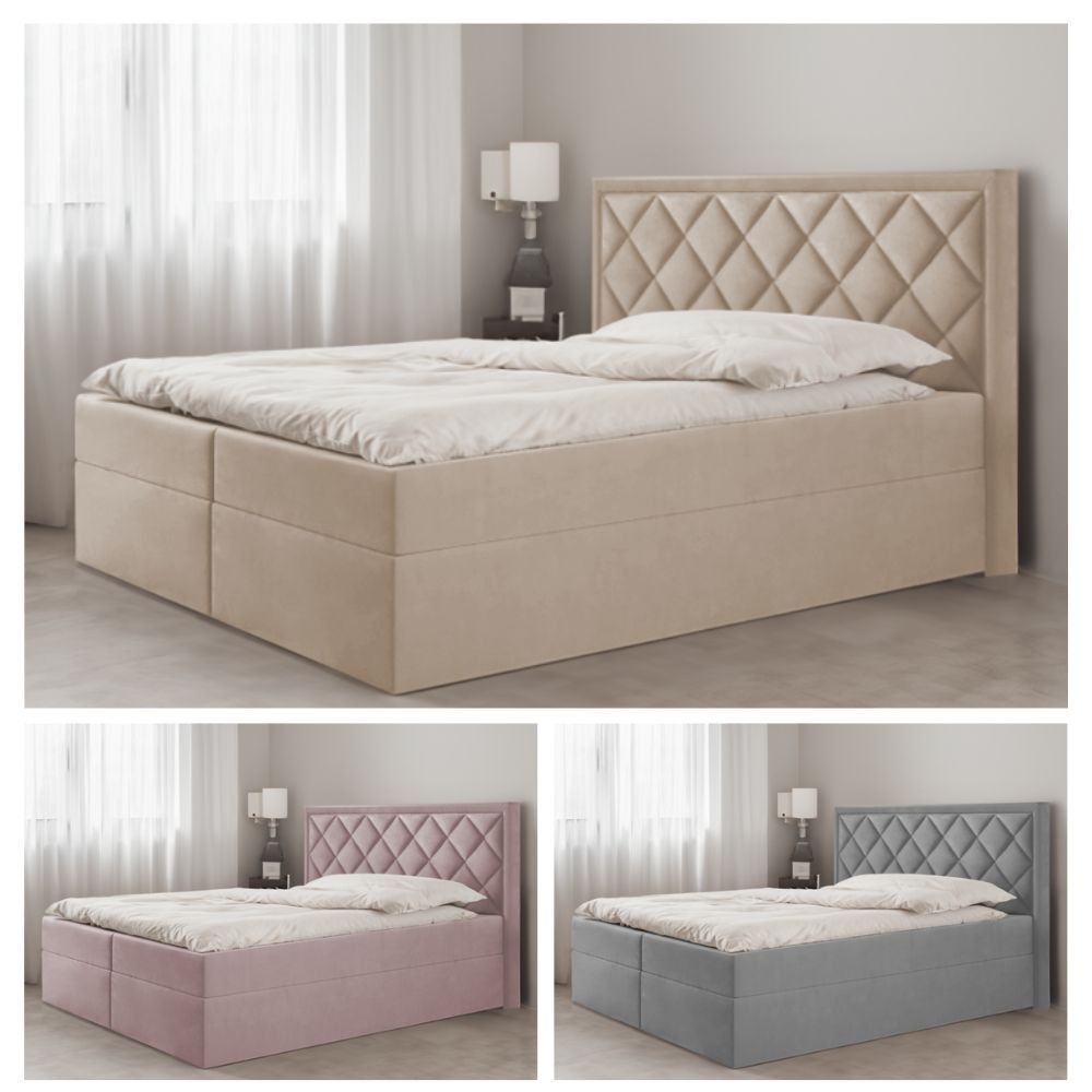 Bett Doppelbett Boxspringbett DORI mit Bonell-Matratze + 2 Bettkästen , H3
