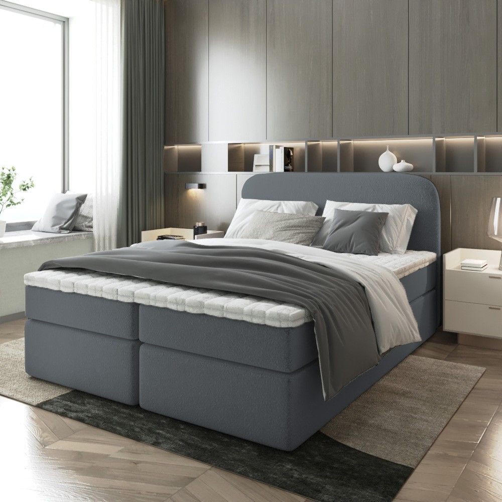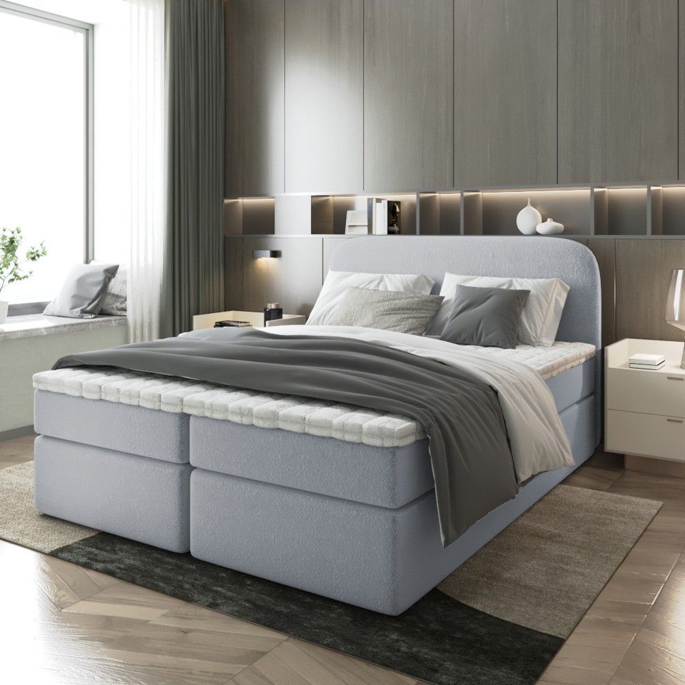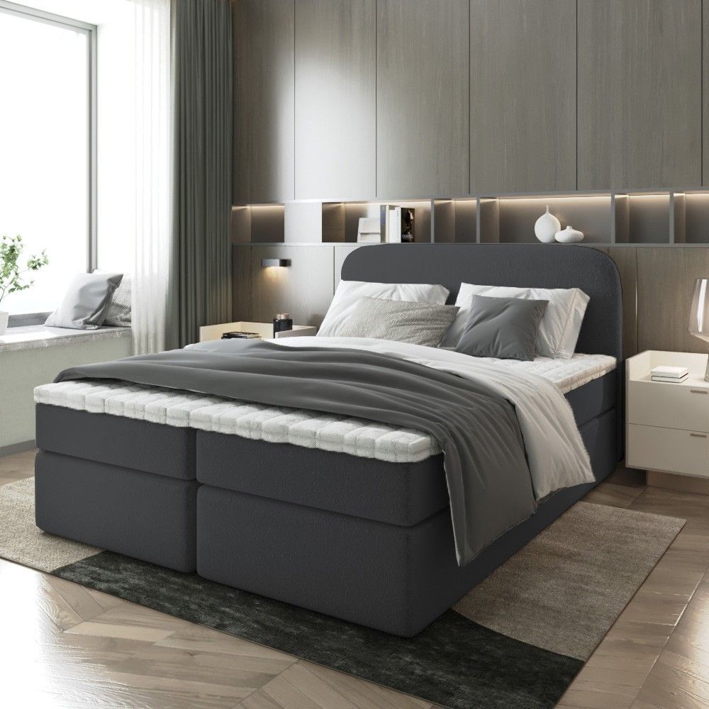 Bett Doppelbett Boxspringbett NOBI mit Bonell-Matratze Bettkästen Boucle Stoff