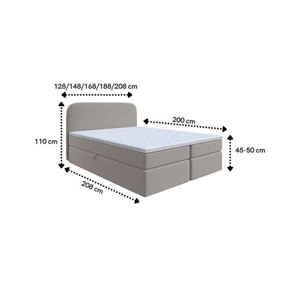 017666076782 Boxspringbett - NOBI SPEZIFIKATION Ma ße: 128x208x110cm : Schlaffläche 120x200 cm 148x208x110cm : Schlaffläche 140x200 cm 168x208x110cm : Schlaffläche 160x200 cm 188x208x110cm: Schlaffläche 180x200 cm 208x208x110cm: Schlaffläche 200x200 cm Farbe : Creme - Coral 15