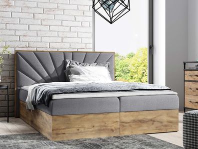 • Boxspringbett Schlafzimmerbett OVIEDO LUX 140x220cm Stoff Faro Grau