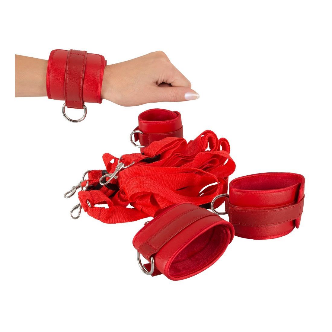 Bett-Fessel-Set Komplett weiches Leder-Imitat Hand Fuß Paare Bad Kitty Fetisch