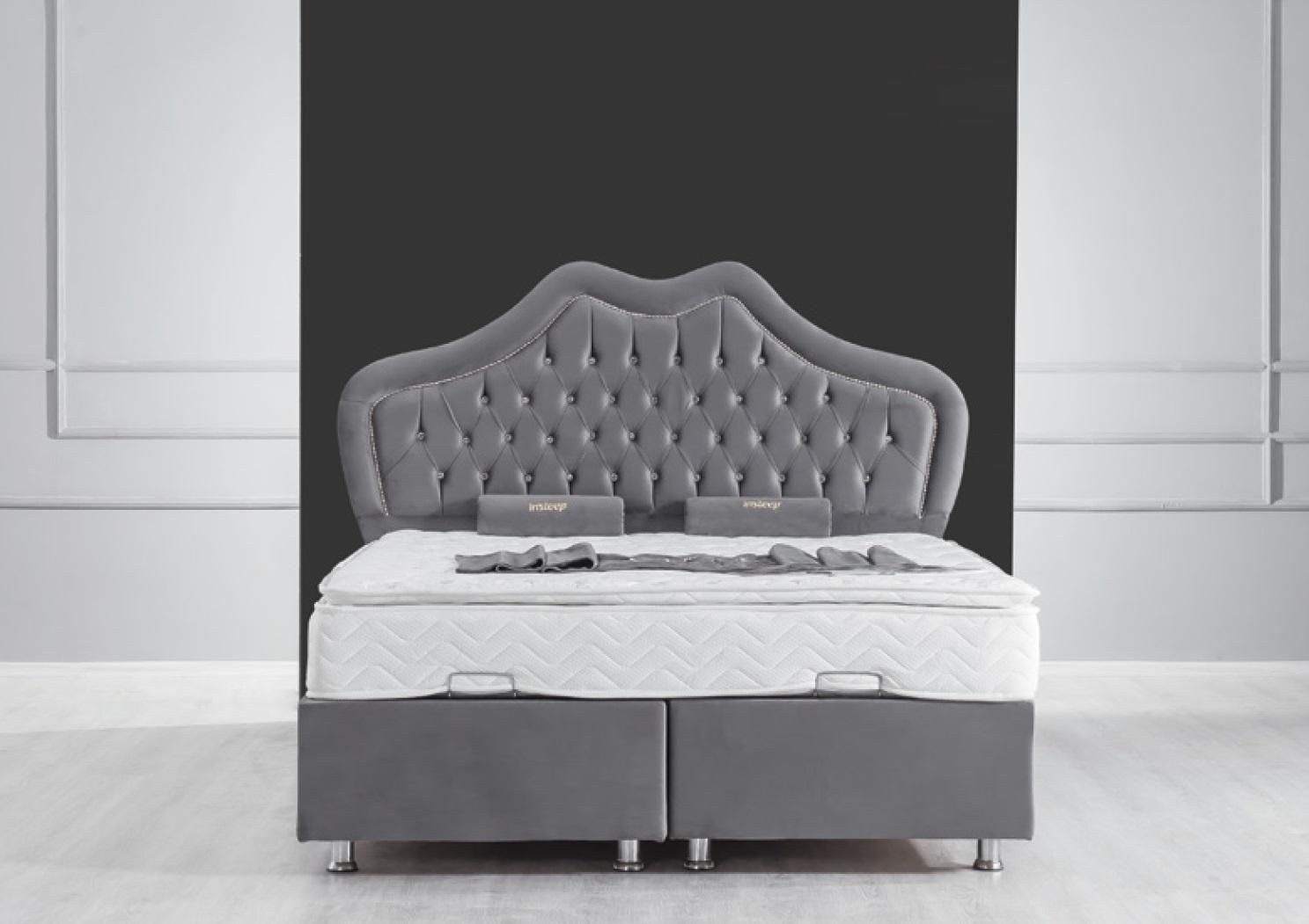 Bett Grau Doppelbett Boxspring Betten Stil Stoff Chesterfield 160x200