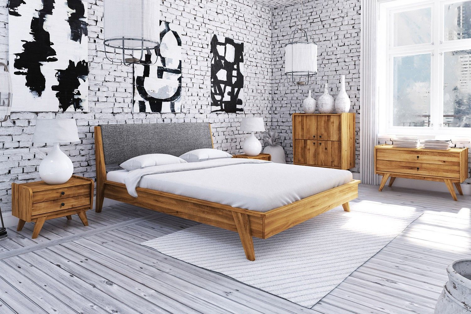 Bett Jetro 1 aus Kernbuche massiv 160x200 mit Polsterkopfteil und Holzbeinen