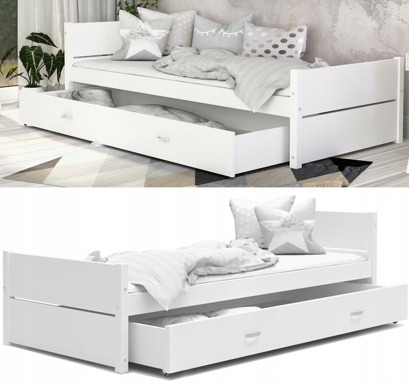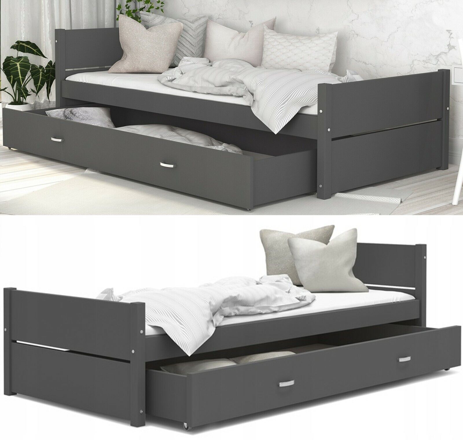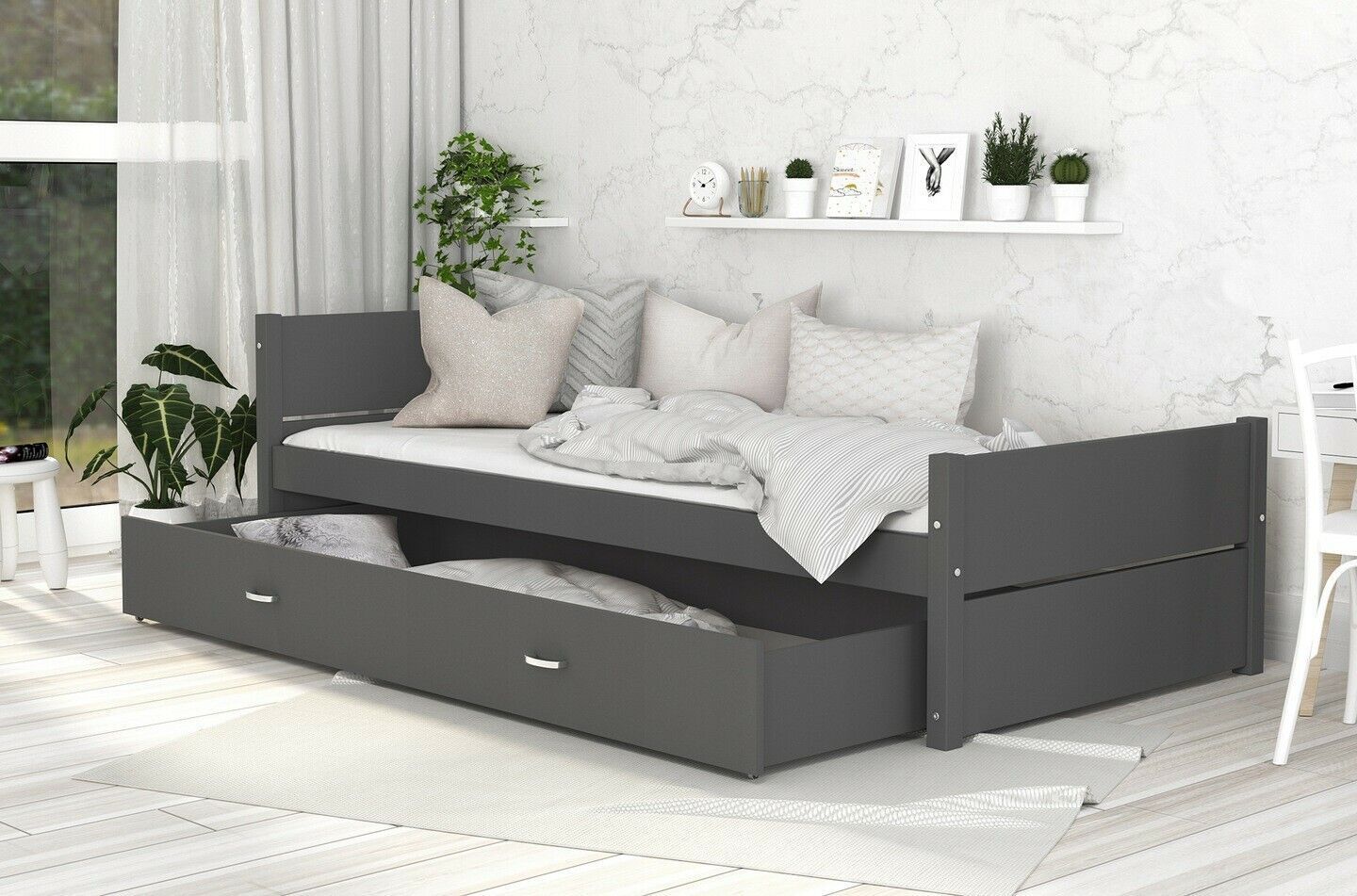 UNSERE ARTIKEL BEWERTUNGEN FRAGEN ZU DEN FAVORITEN STRORES EBAY Fotogallerie Produktbeschreibung Bett jung 90x200cm Gestell KINDERZIMMER JUGENDBETT mit Matratze und Schubladen Tymon schubl. grau mit Matratze Beschreibung : BED mit Schublade Farbe: grau weiss Das Bett enthält: Flexrahmen aus hochwert