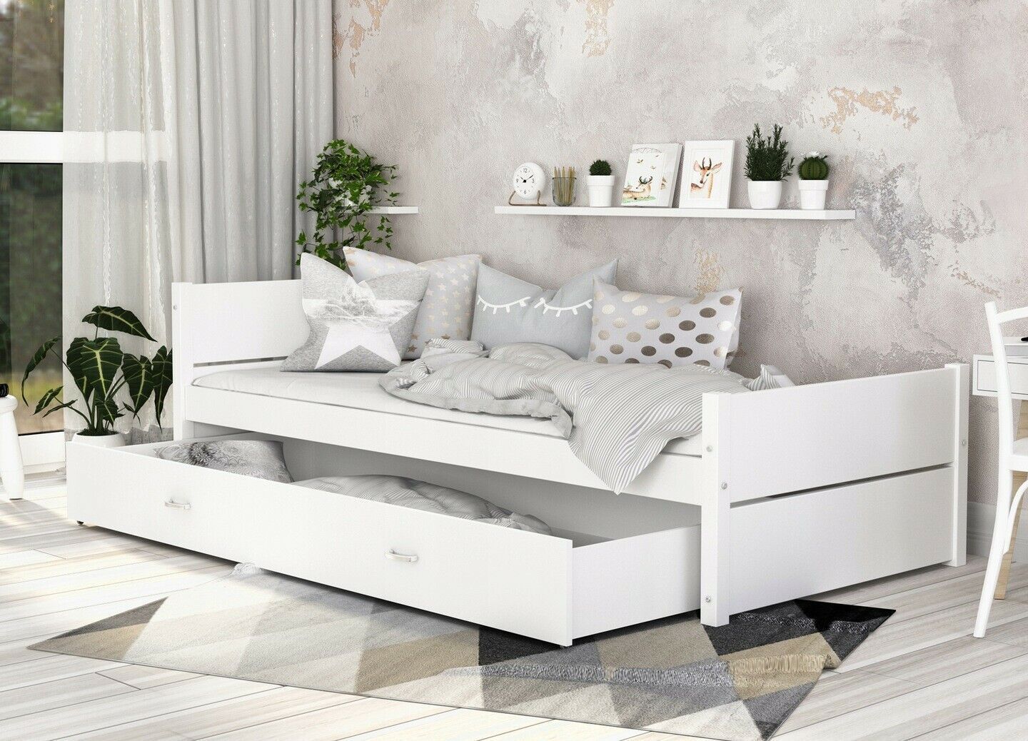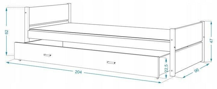 Bett jung 90x200cm Gestell Kinderzimmer Jugendbett mit Matratze und Schubladen