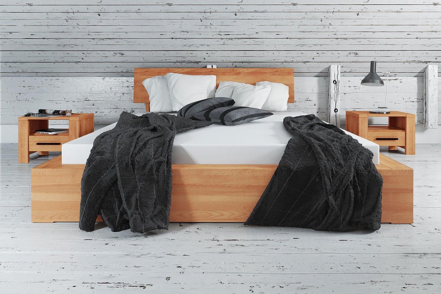 Bett Lubic 2 Sonderlänge 200x210 Kernbuche mit Holzkopfteil und Holzfußgestell