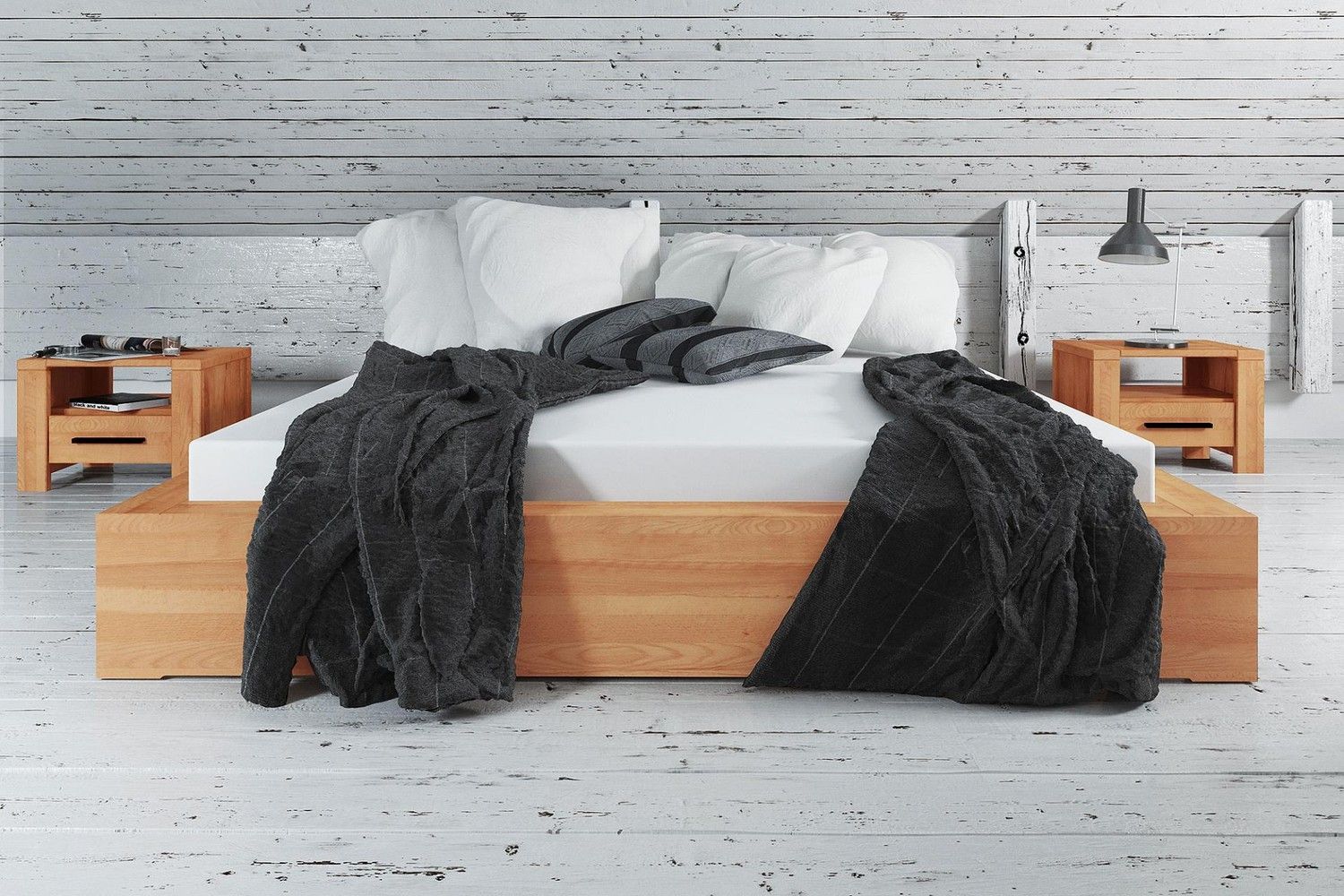 Bett Lubic 3 Sonderlänge 160x220 Kernbuche ohne Kopfteil mit Holzfußgestell