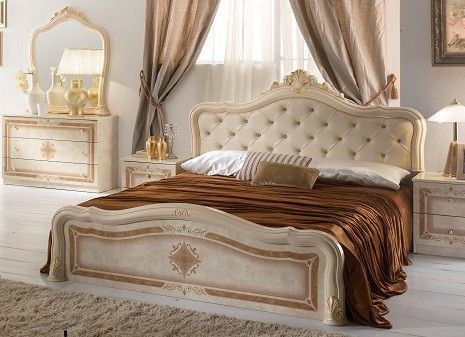 Im Lieferumfang enthalten: 1x Doppelbett mit aufwändig gearbeiteten Polster im Kopfteil mit aufwändig gearbeiteten Kopfteil- und Fußteil in hochglanz Kopfteil mit Polsterung und Strasssteine Polsterung aus Kunstleder, ca. 5 cm Spanplatte Polsterbezug Die Lieferung erfolgt ohne Matratze & ohne La
