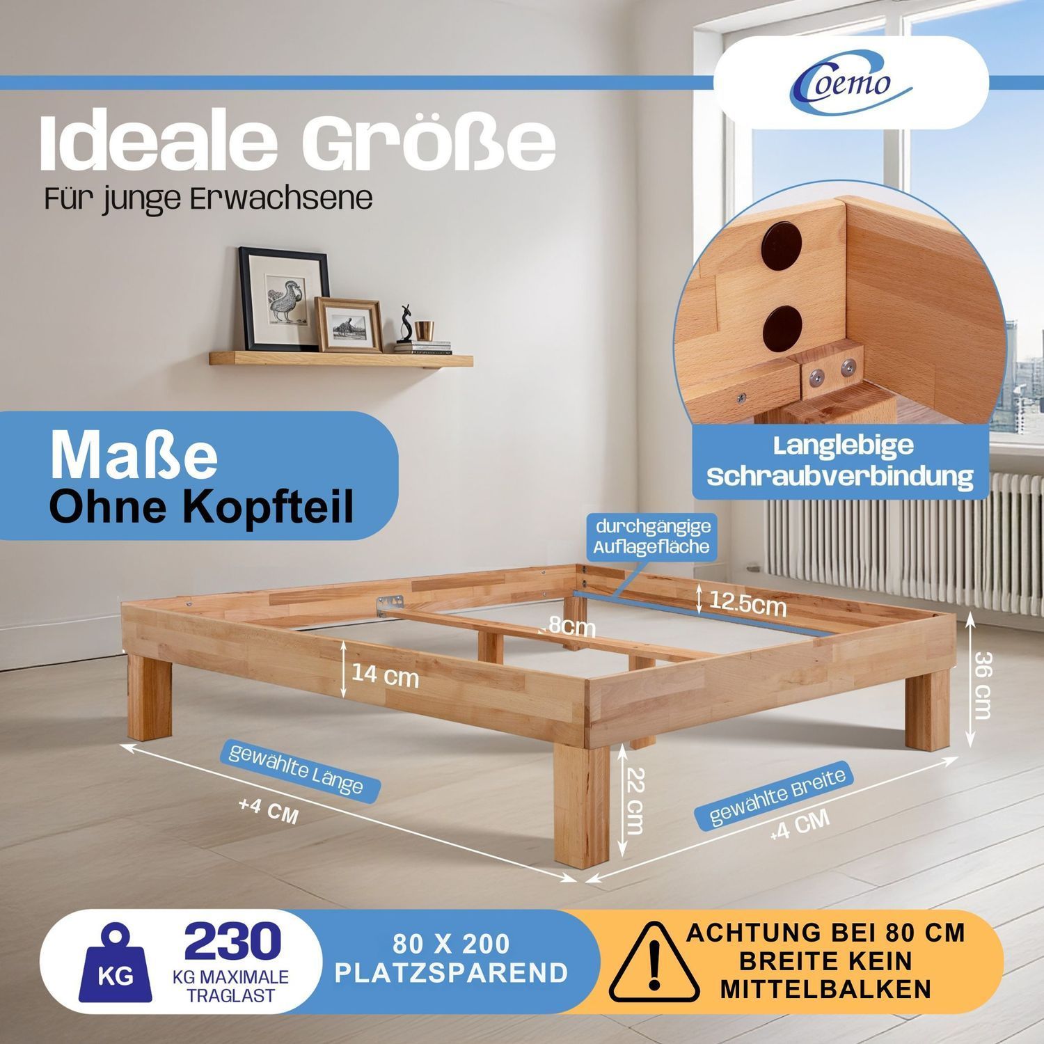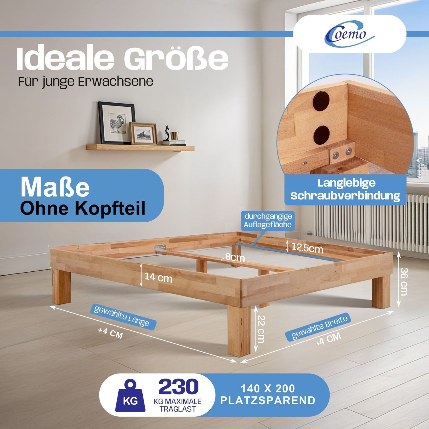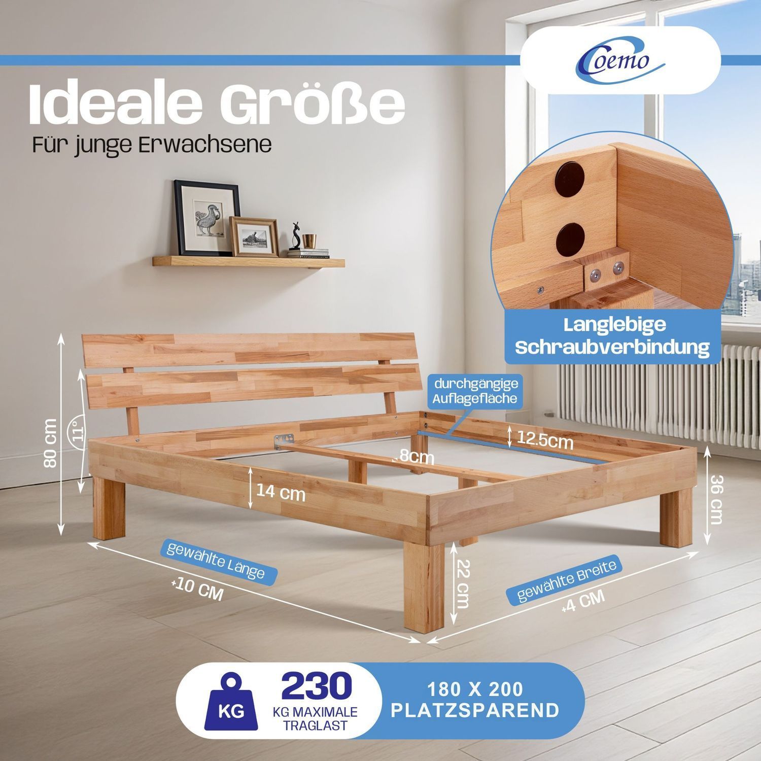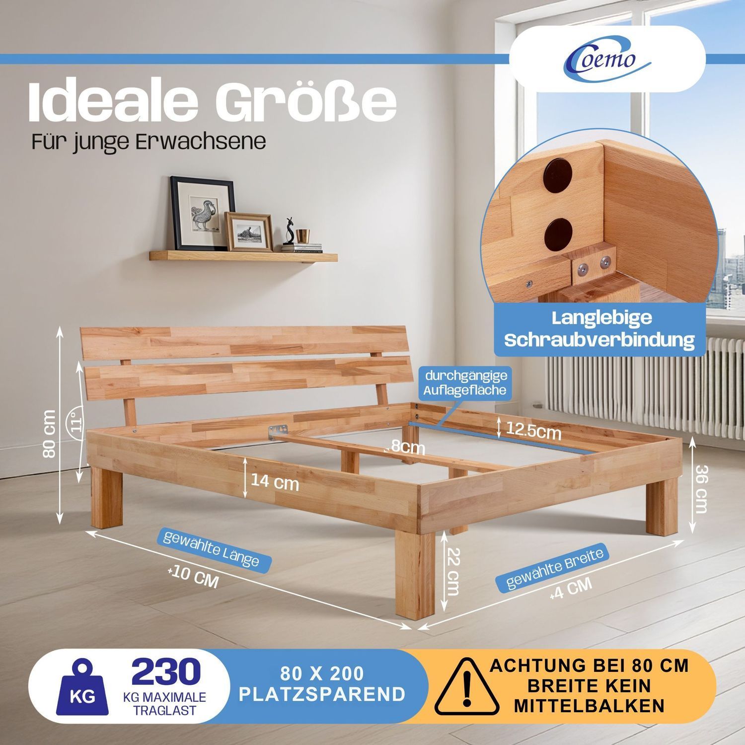 Bett Massivholz Leah Buche massiv
