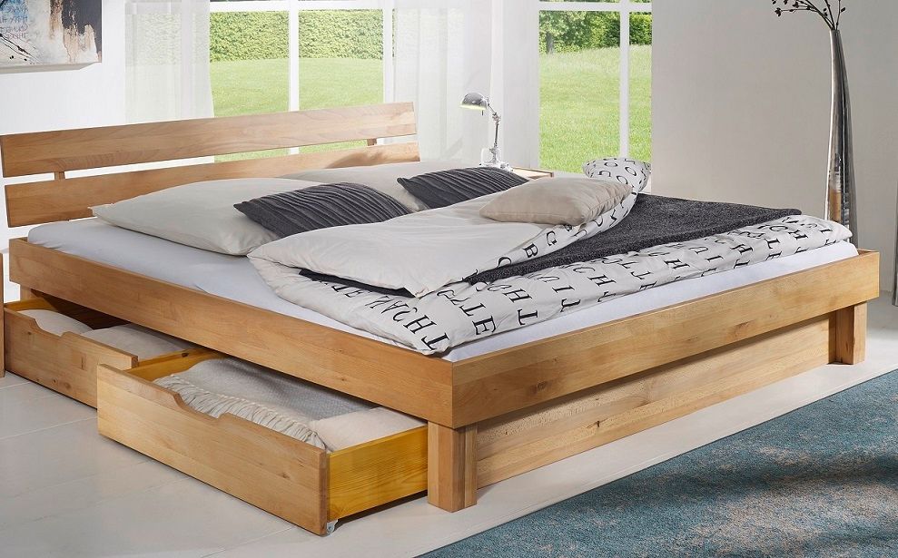 Bett mit Bettkästen 'Lewis' 140x200cm Kernbuche geölt