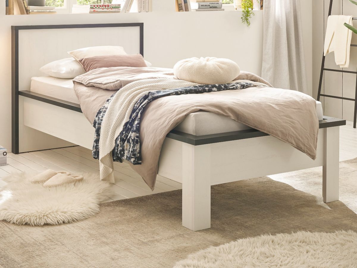 Bett mit Kopfteil Einzelbett Liegefläche 90 x 200 cm Bettgestell weiß Landhaus Stove