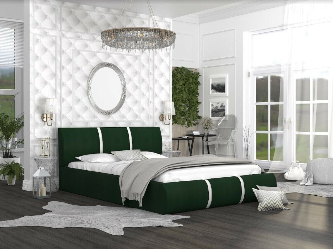 Bett mit Lattenrost Jugendbett Doppelbett gepolsterte Fusion Velours Grün