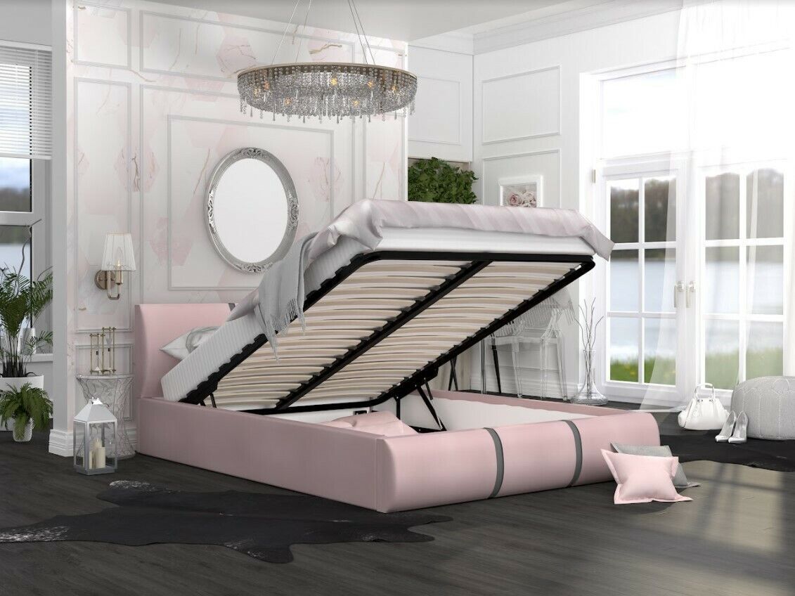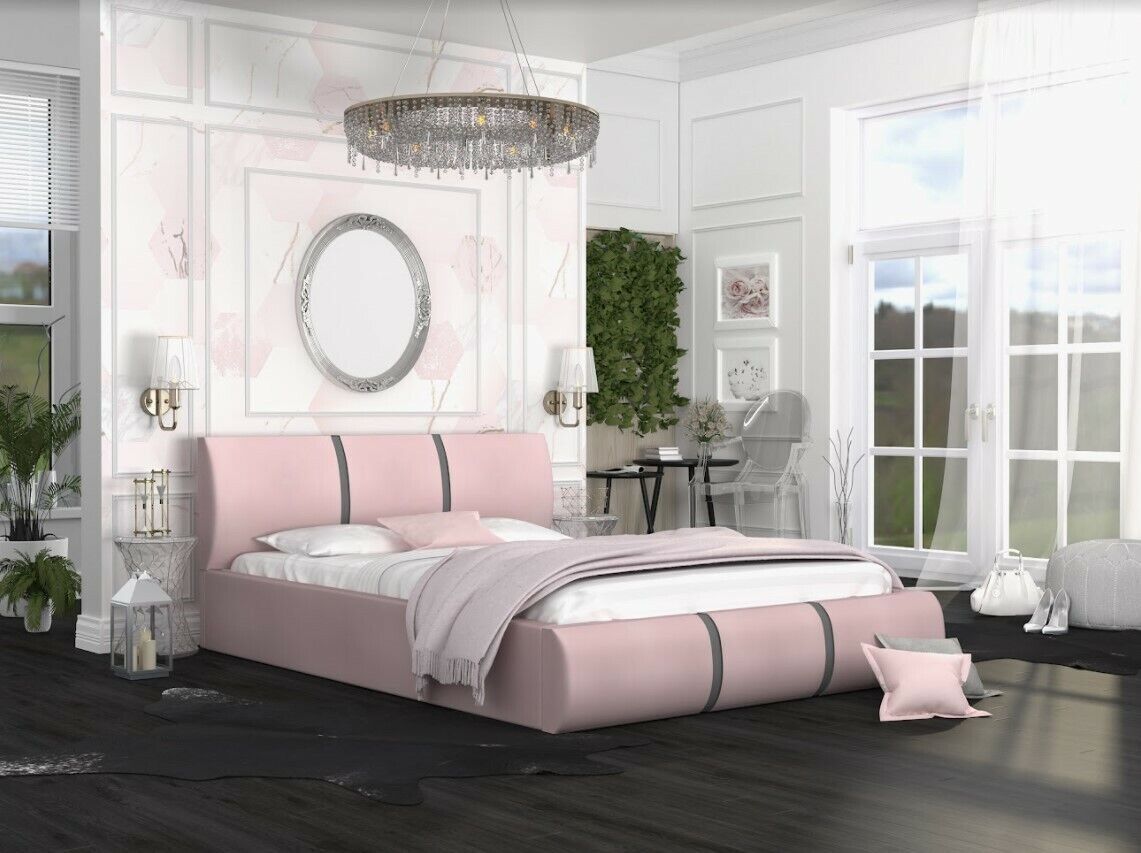 Bett mit Lattenrost Jugendbett Doppelbett gepolsterte Fusion Velours Rosa