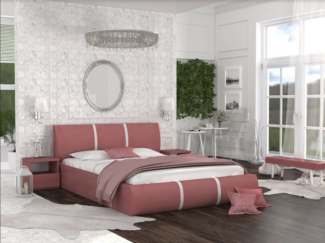 Bett mit Lattenrost Jugendbett Doppelbett gepolsterte Fusion Velours Salmon