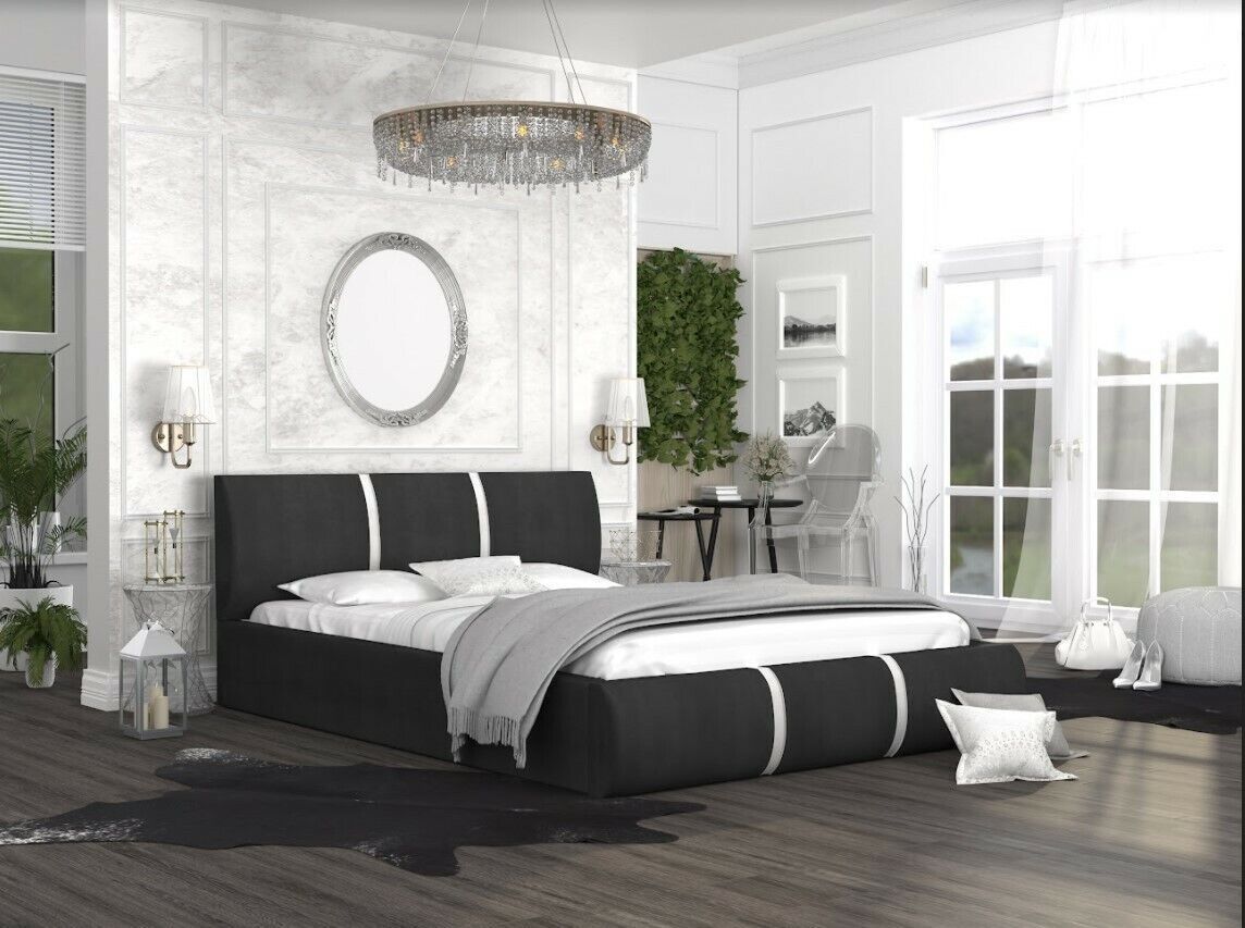 Bett mit Lattenrost Jugendbett Doppelbett gepolsterte Fusion Velours schwarz