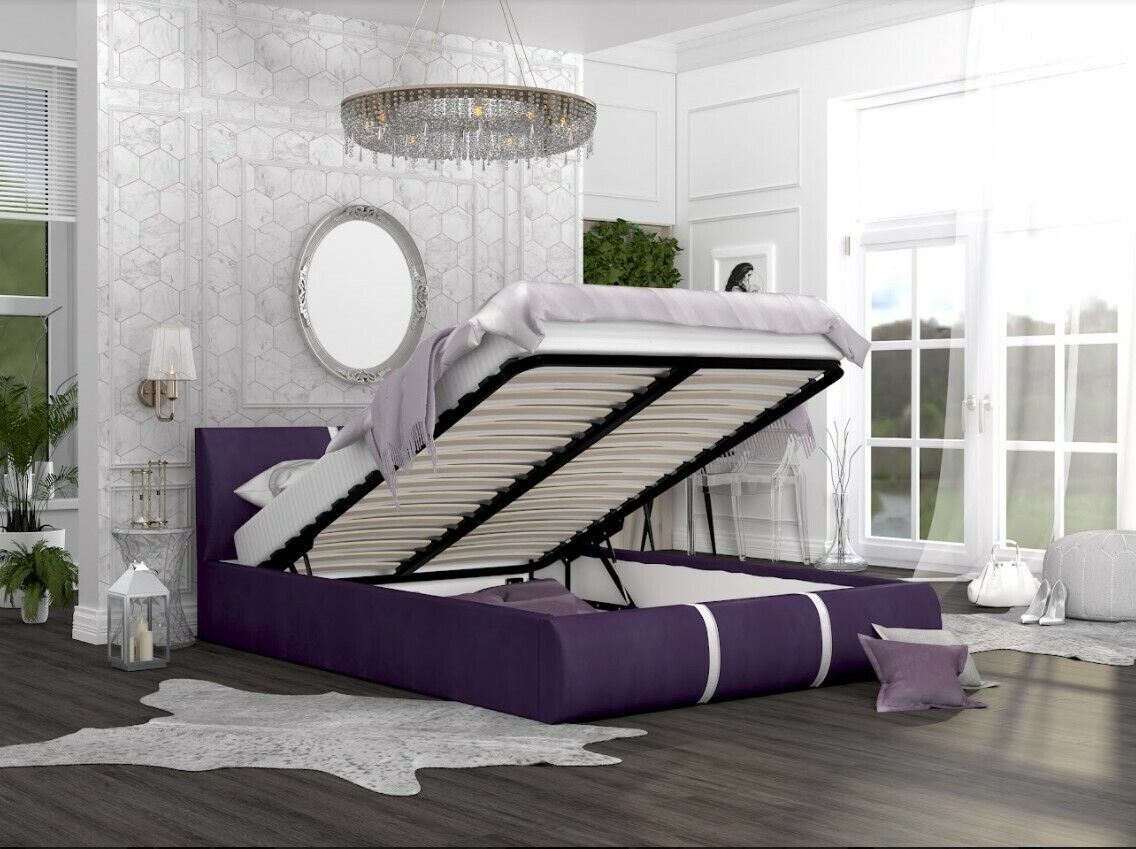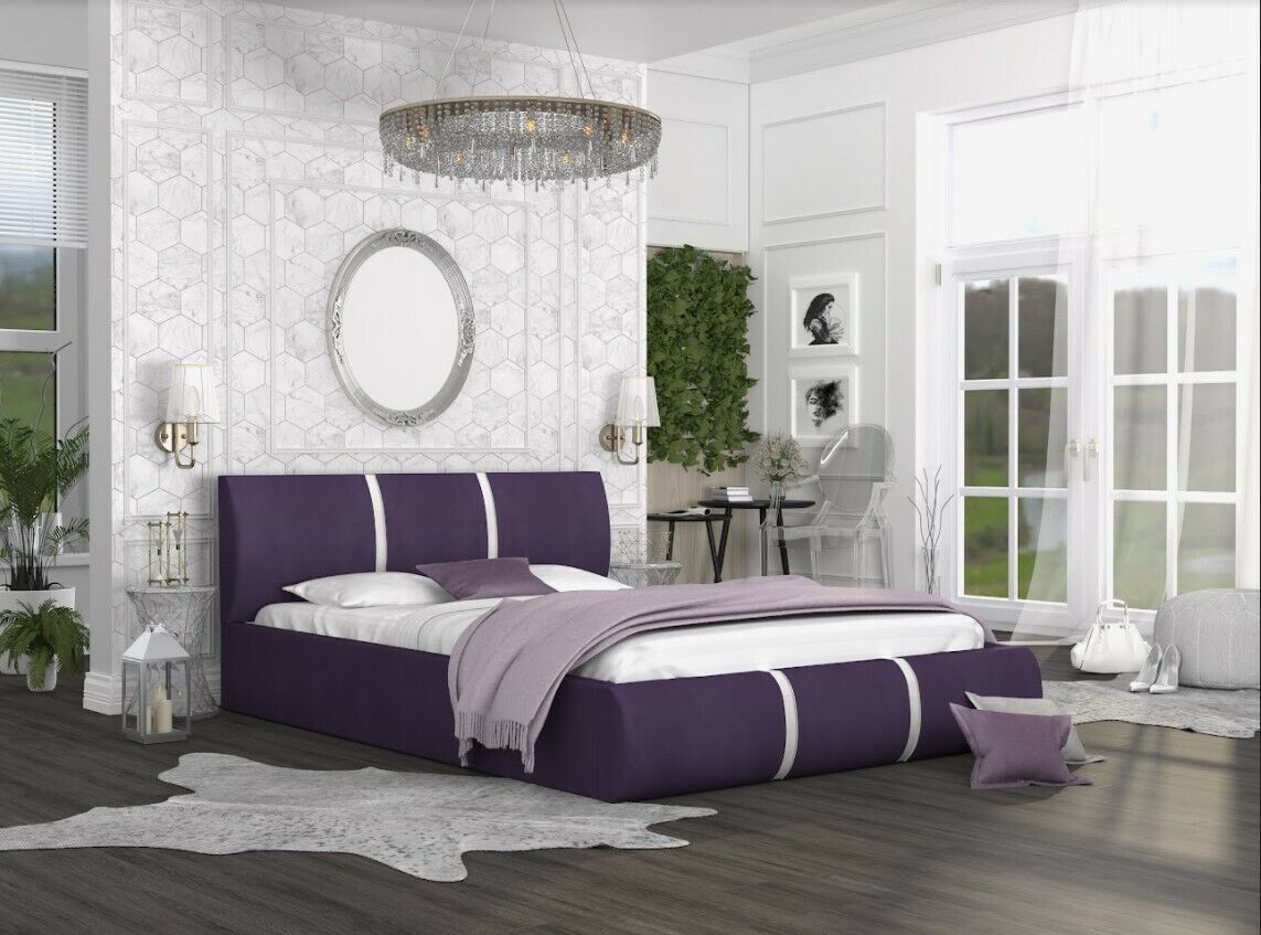 Bett mit Lattenrost Jugendbett Doppelbett gepolsterte Fusion Velours Violett
