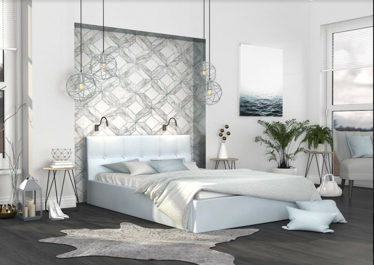 Bett mit Lattenrost Jugendbett Doppelbett gepolsterte lict blau 140 / 160 / 180