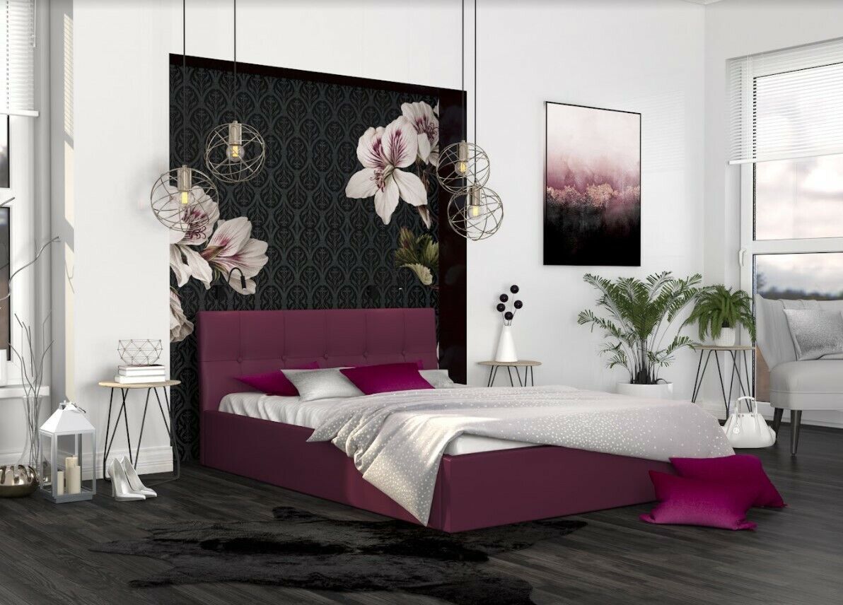 Bett mit Lattenrost Jugendbett Doppelbett gepolsterte Wein 140 / 160 / 180