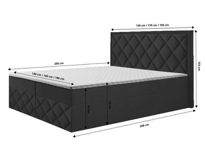 Boxspringbett DORMI 3 Boxspring DORMI 3 - ist ein praktisches Bett aus hochwertigen Materialien, das über zwei Behälter für die Einstreu verfügt. Das Continental Bed kombiniert eebanal Formen, einen einzigartigen Finishing-Stil und innovative Technologien, um dem Kunden das Gefühl zu geben, etwas Be