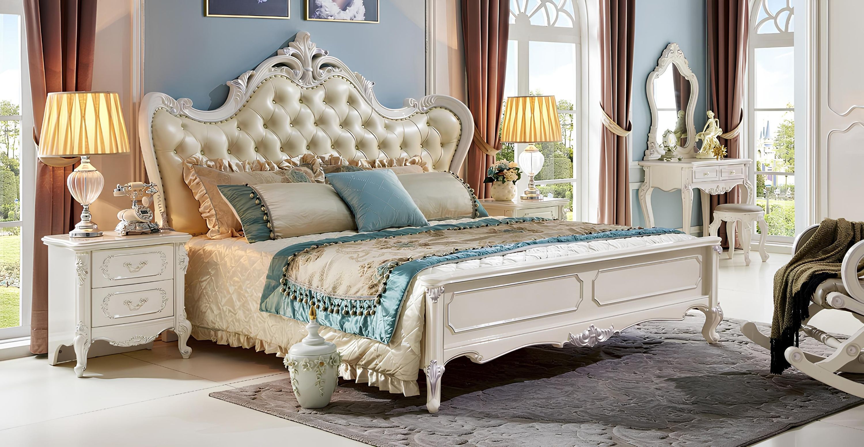 Bett Nachttisch Kommode Schlafzimmer Set Design Klassisch Luxus Betten Neu