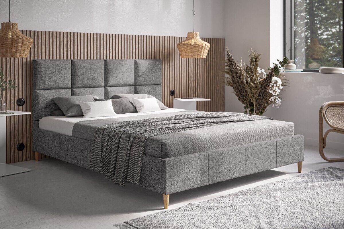 Muralo Polsterbett für Schlafzimmer Stoffbett Bett mit Bettkaste Container Doppelbett
