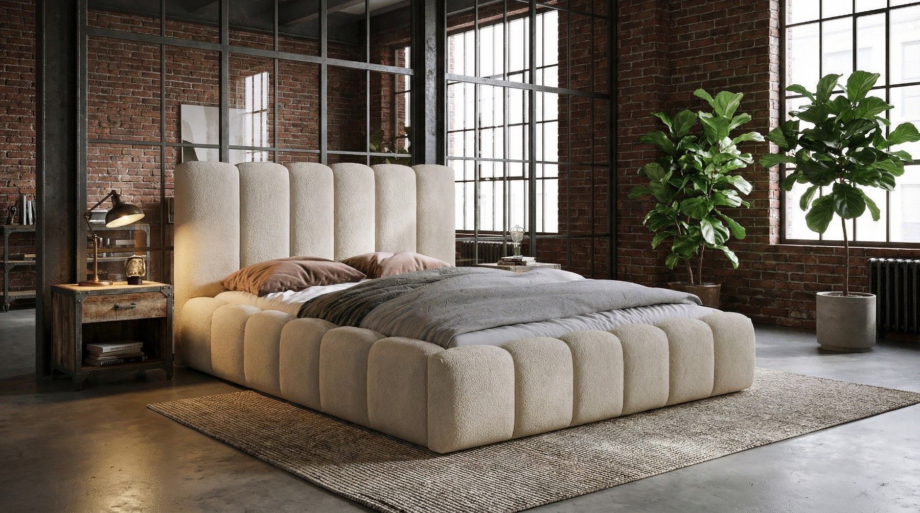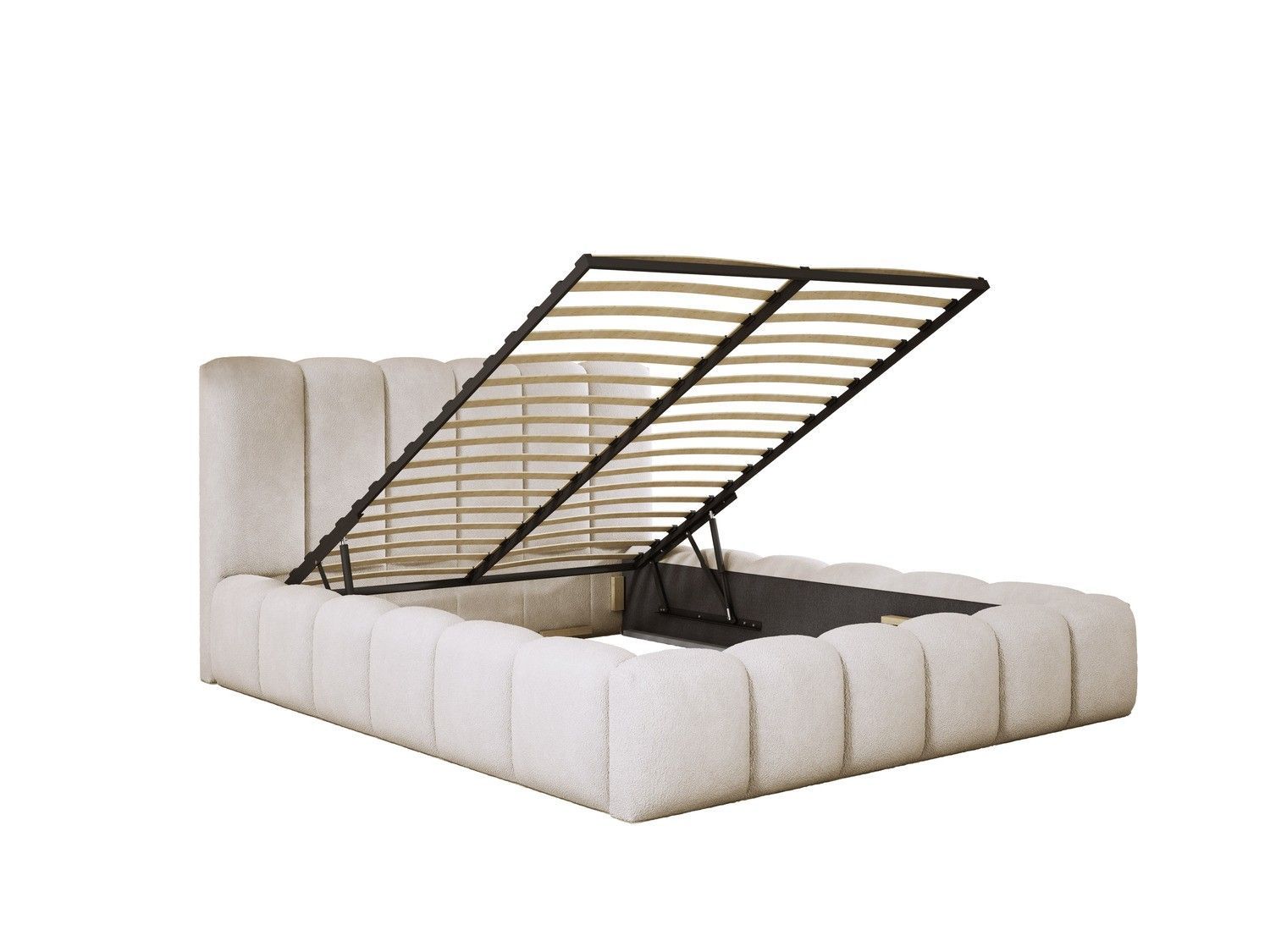 Bett Polsterbett VELORA Metallgestell Lattenrost Stauraum BOUCLE schnelle lieferung