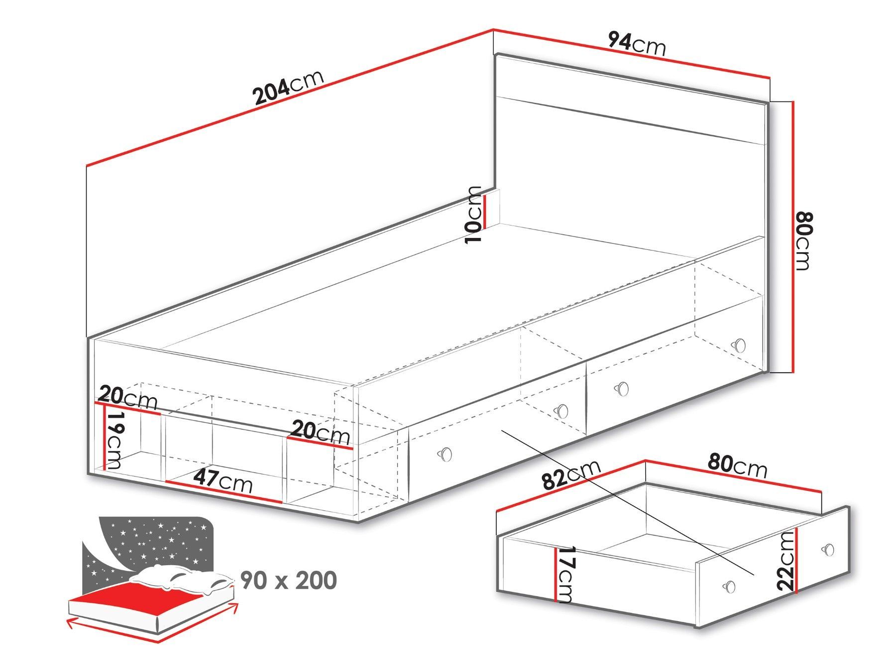 Bett Rancjano 14 L/ P Kinderzimmer Jugendzimmer Einzelbett mit Bettschublade