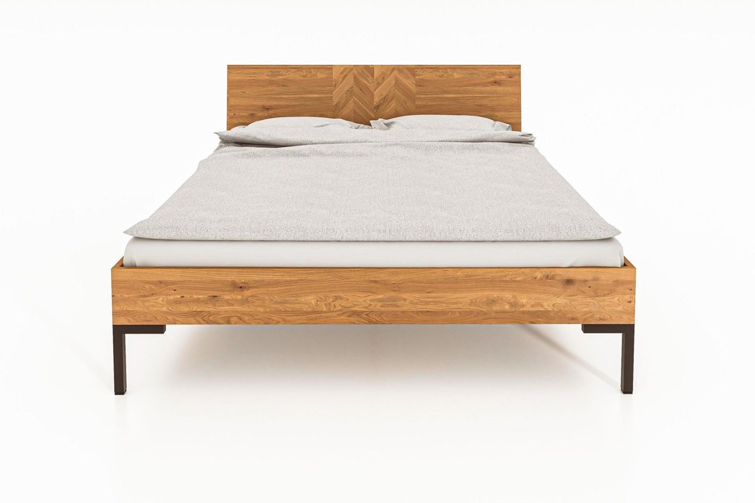 Bett Seiba 2 Kernbuche massiv 160x200 mit Holzkopfteil und Metallbeinen
