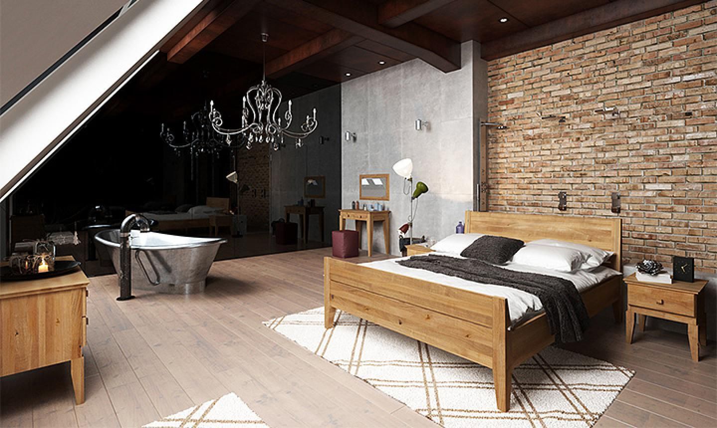 Bett Sydo 8 aus Kernbuche massiv 140x200 cm mit Holzkopfteil und hohem Fußteil