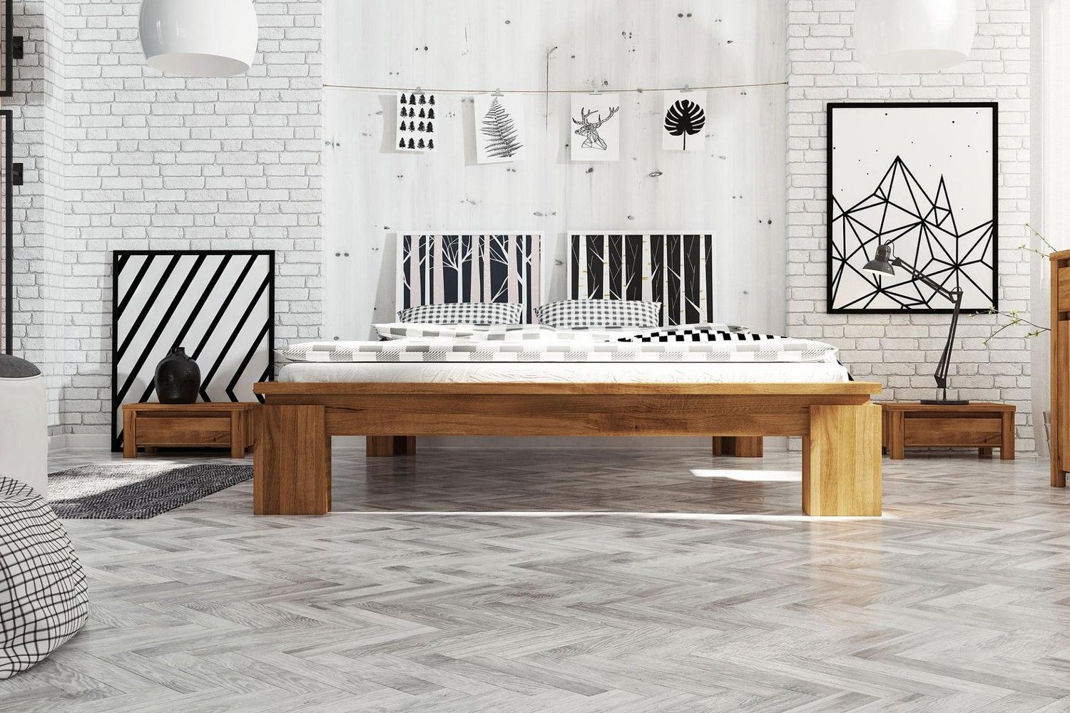 Bett Tinci 4 in 200x200 cm aus Wildeiche massiv ohne Holzkopfteil
