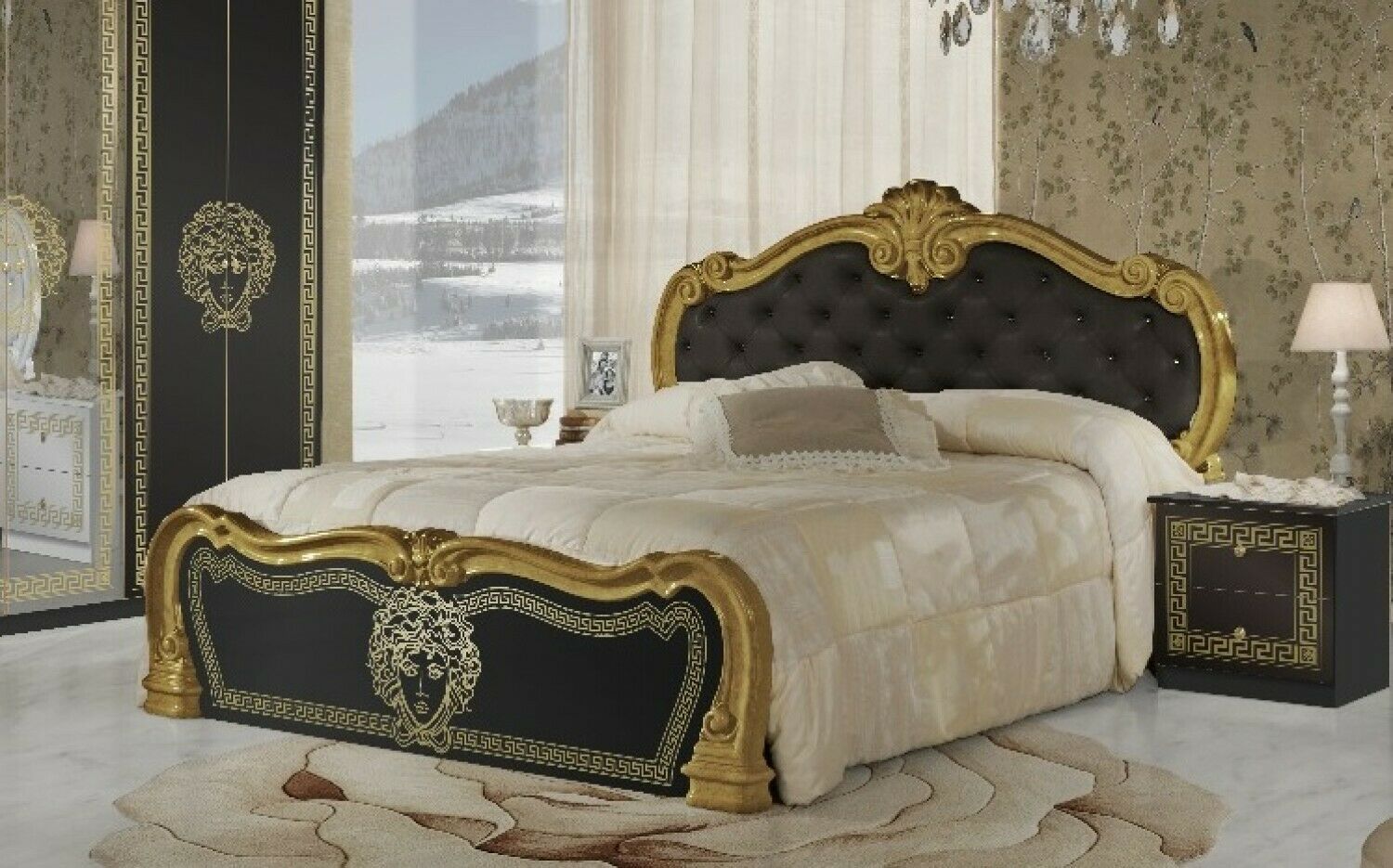 Bett Vilma 160x200 cm in Schwarz Gold Barock Design mit Polsterung