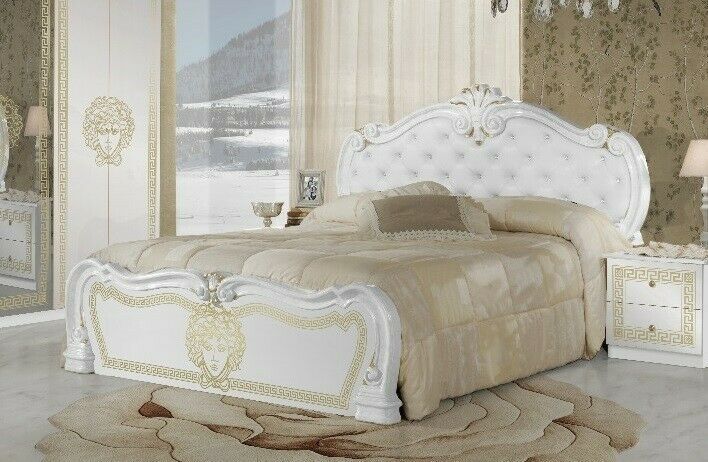 Bett Vilma 160x200 cm in Weiß Barock Design mit Polsterung