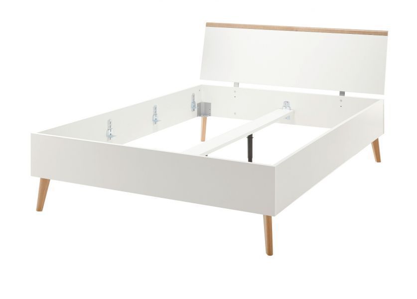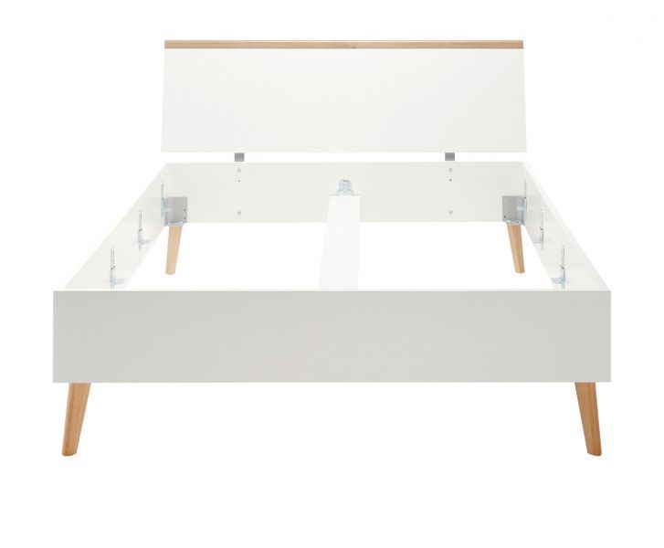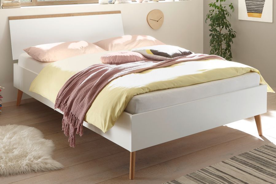 Bett weiß / Eiche Riviera Einzelbett Hygge 140x200 cm Helge Holzbett mit Kopfteil