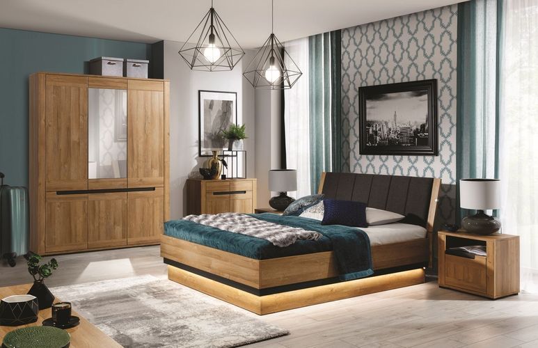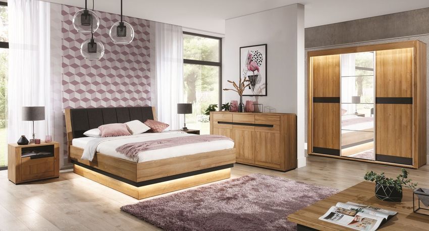 Komplettes Schlafzimmer SET Schrank BETT BETTEN MIT LED NEU Kommode NEW YORK
