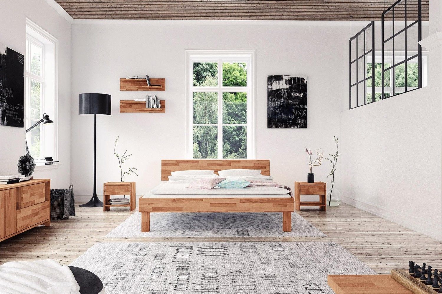 Bett Zigo 1 aus Kernbuche massiv 180x200 mit Holzkopfteil und Holzbeinen