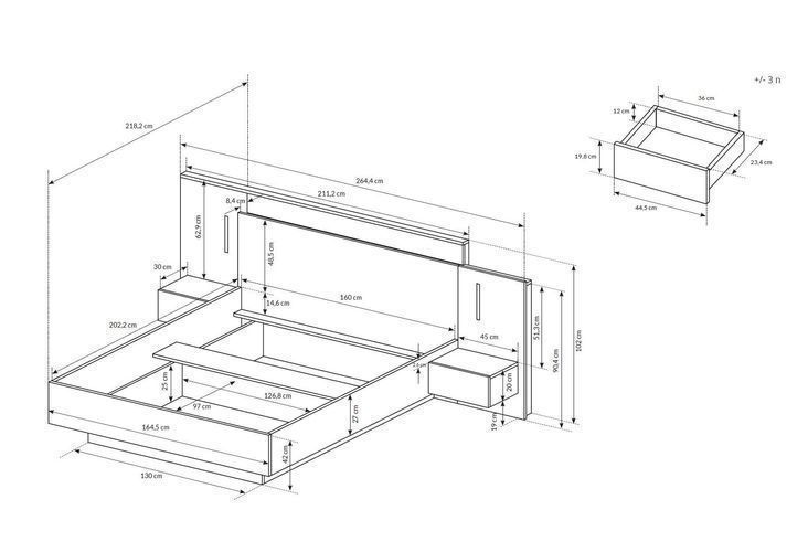 Bettgestelle 3D mit lift Lattenrost 160x200 cm 2 Nachttischen und Led Beleuchtung
