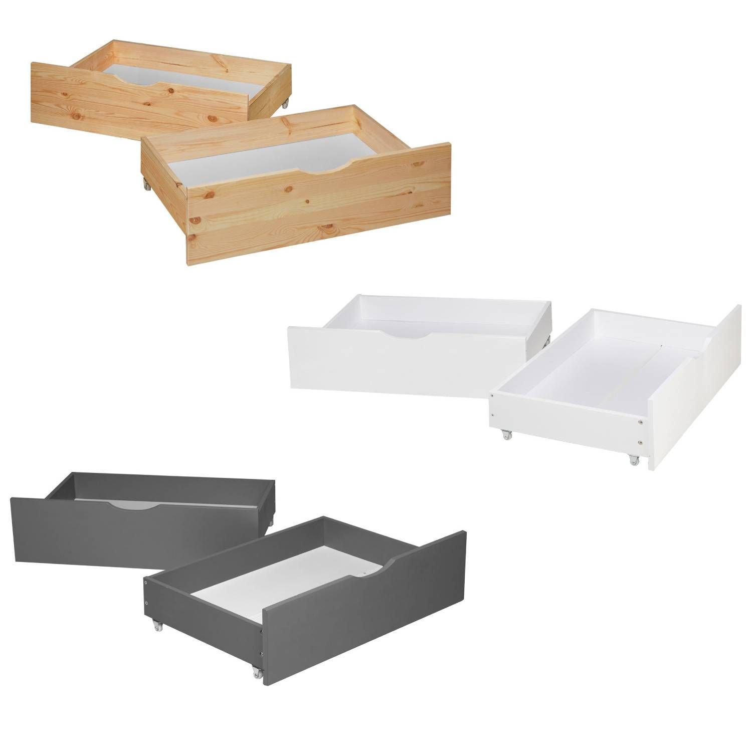 Bettkasten 2er Set Holz Aufbewahrung mit Rollen Bettschublade Bett Auszug Schublad